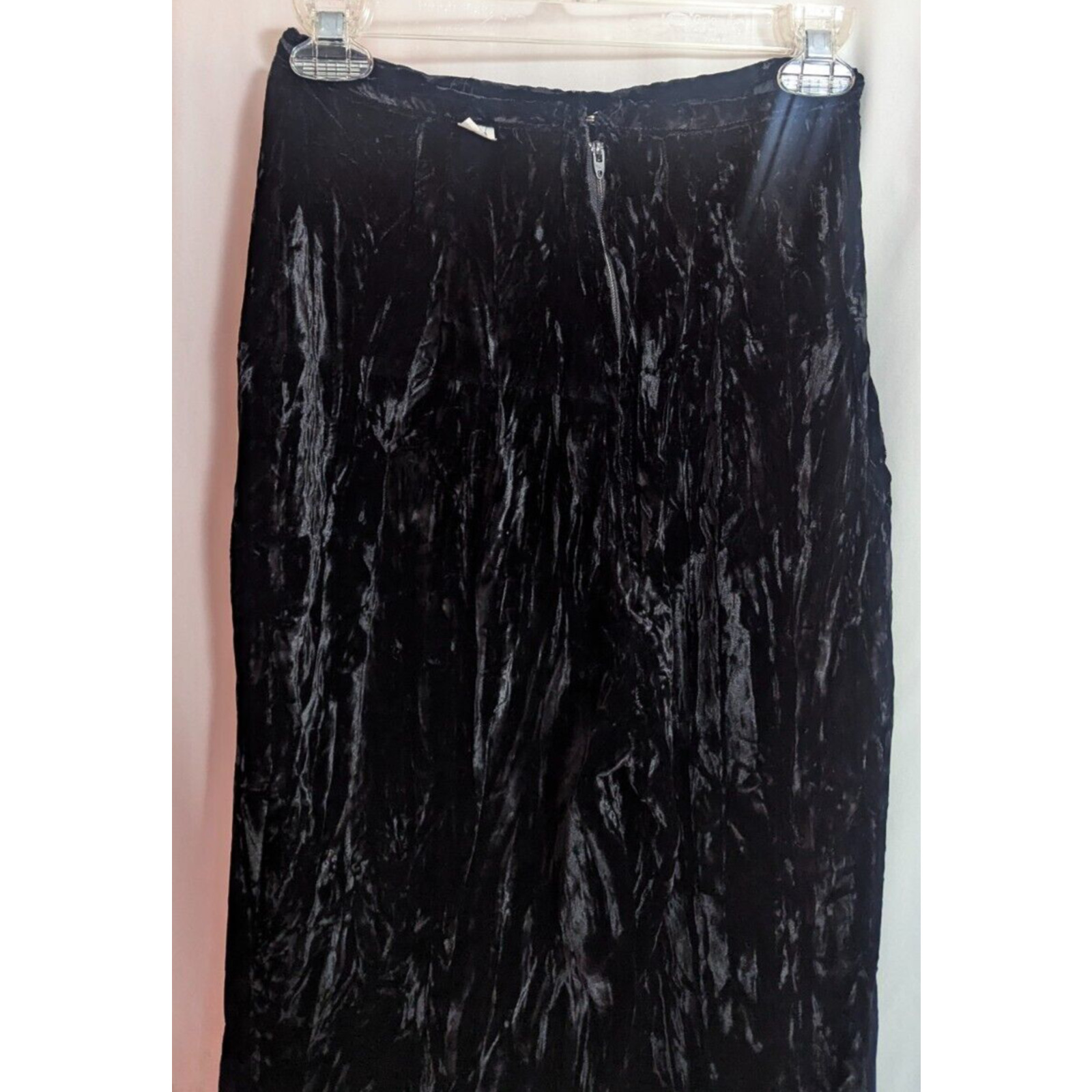 Vintage 70s Black Crush Velvet High Waist Flare Leg Pants XXS XS Z1 Disco Goth