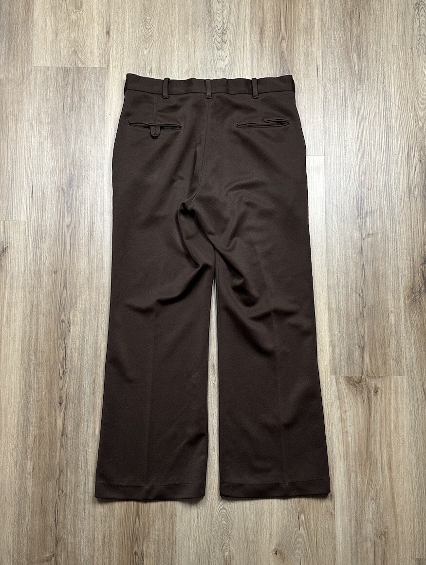 как выглядит 70s VINTAGE Sears Kings Road Brown Polyester Pants Size 32x28 Bootcut Flare Men фото