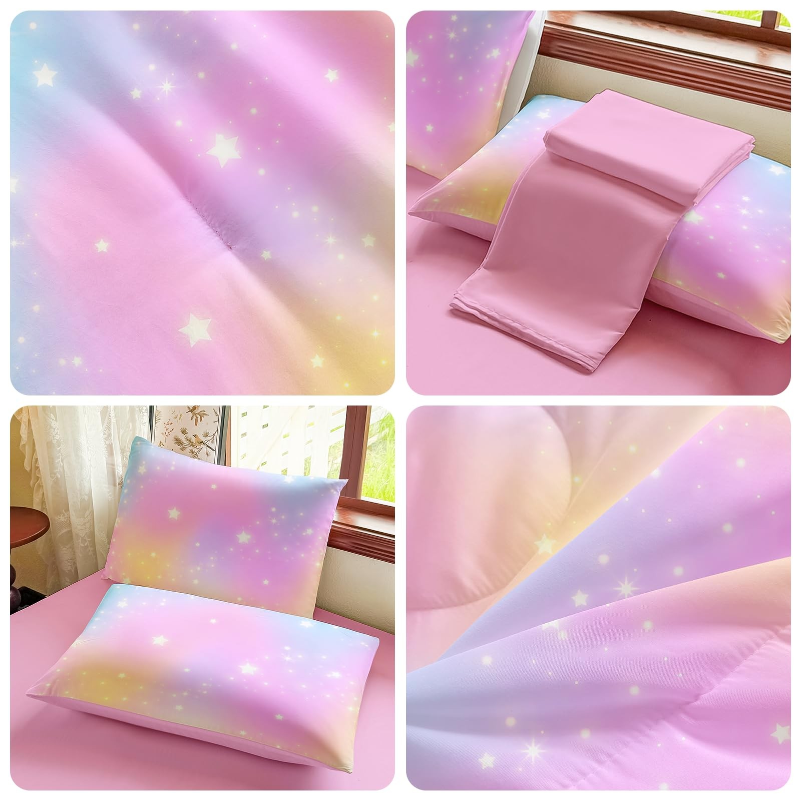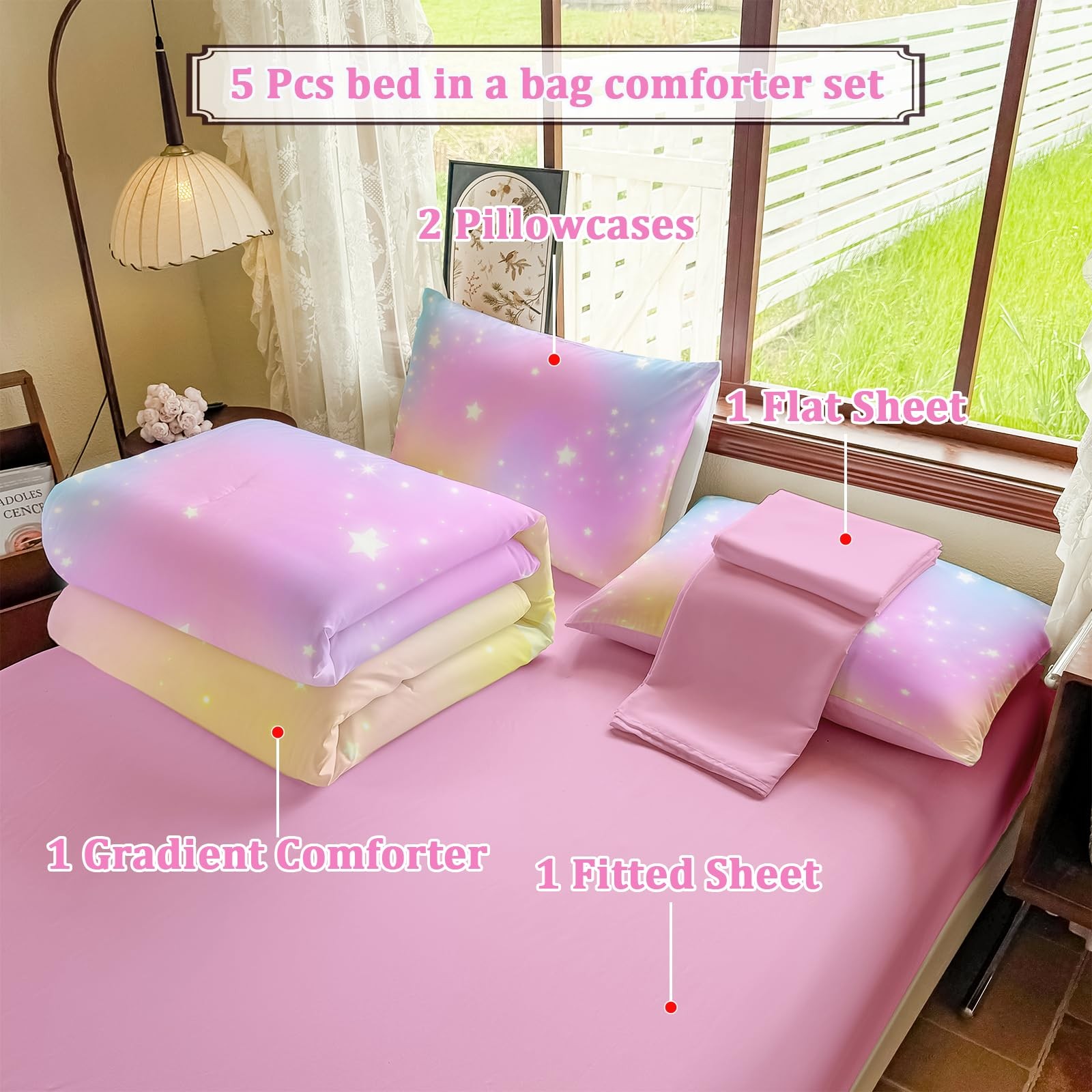 Rainbow Bedding Set Full Size 5 Piece Reversible Girls Comforter with Deep-...