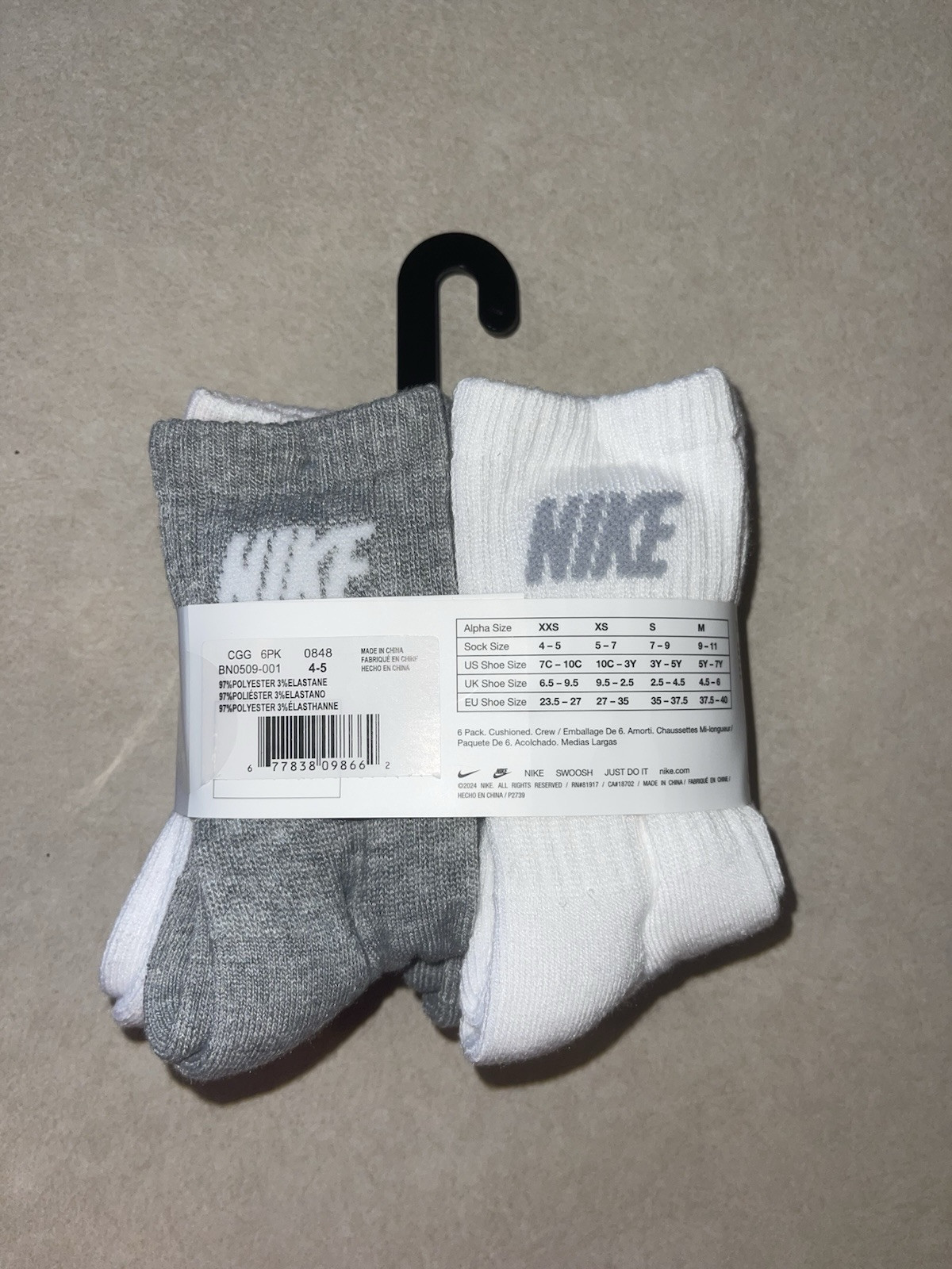 Nike Cushioned Crew Socks - Youth Size 4-5 shoe size 7c-10c 6 Pk - NWT