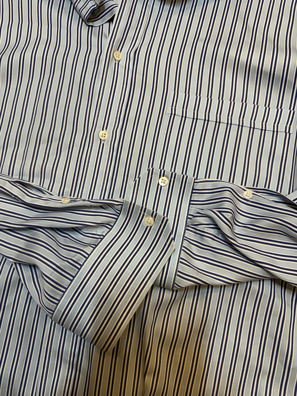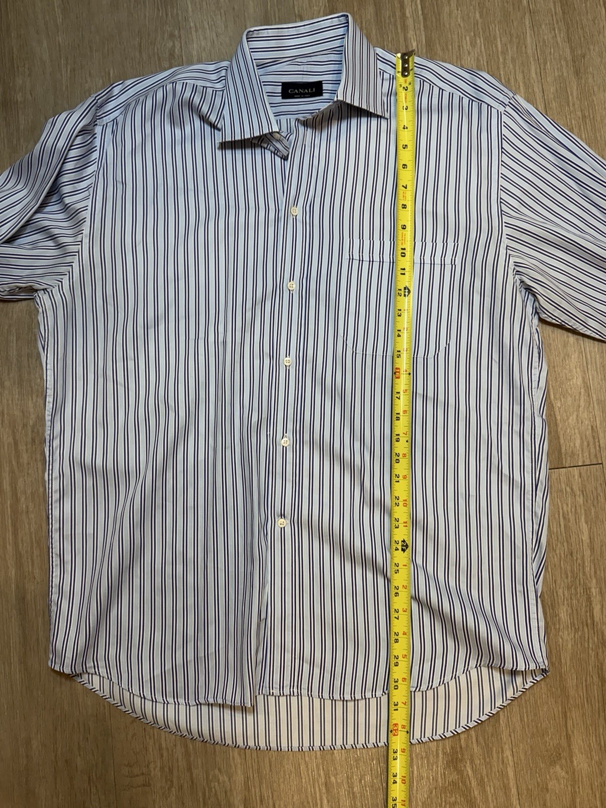 как выглядит Canali 1934 Shirt Mens Shirt 17 43 Blue White Striped Button Up Made In Italy фото