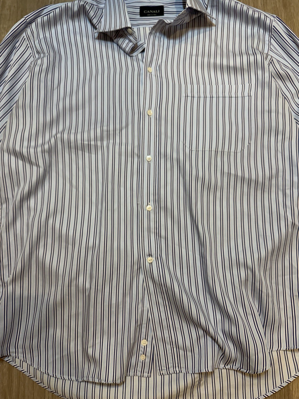 Canali 1934 Shirt Mens Shirt 17 43 Blue White Striped Button Up Made In Italy