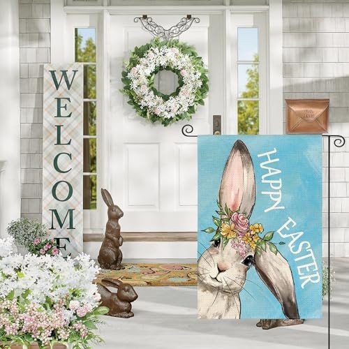 Happy Easter Bunny Garden Flag 12x18 Inch Double Garden Size-12 x 18 Blue