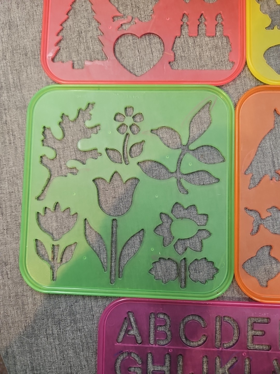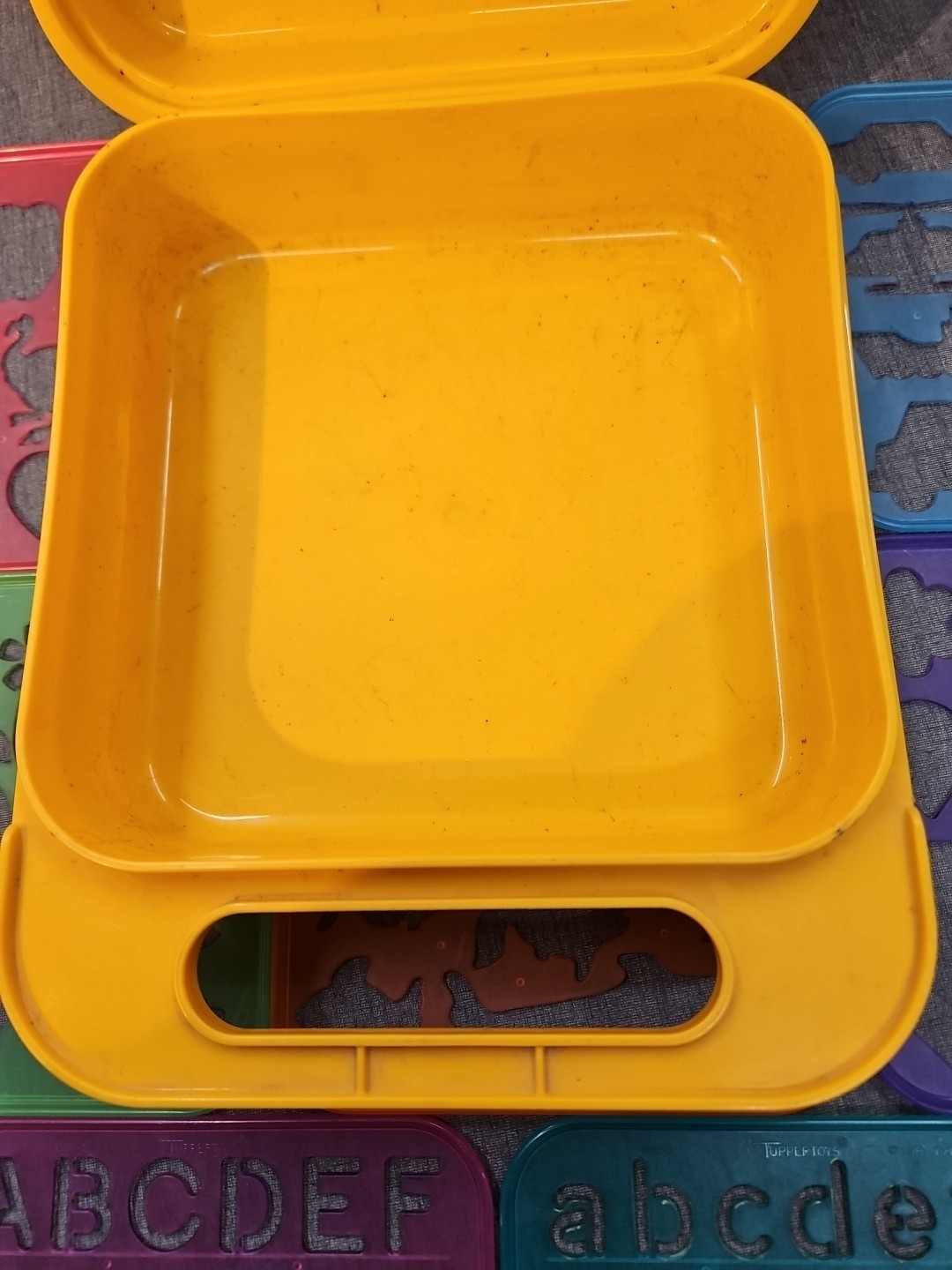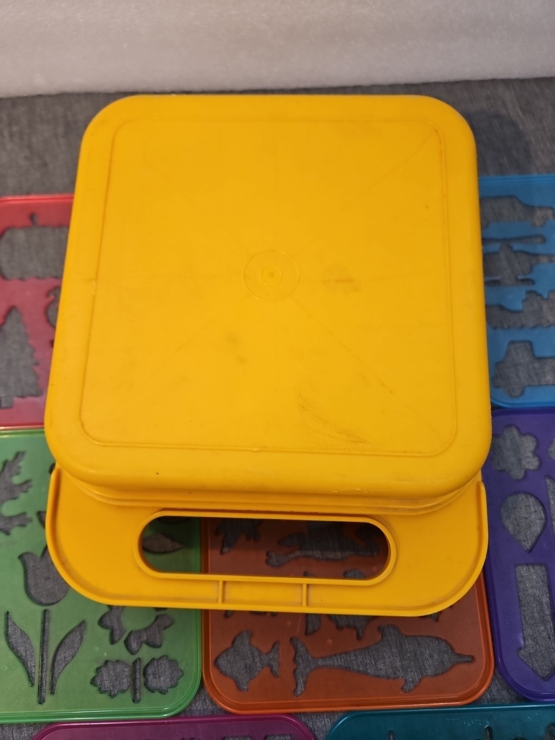 VINTAGE TUPPERWARE TUPPERTOYS 8 STENCILS WITH YELLOW CASE
