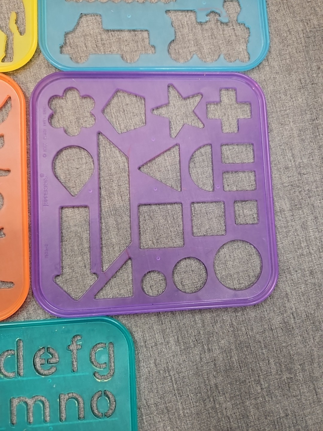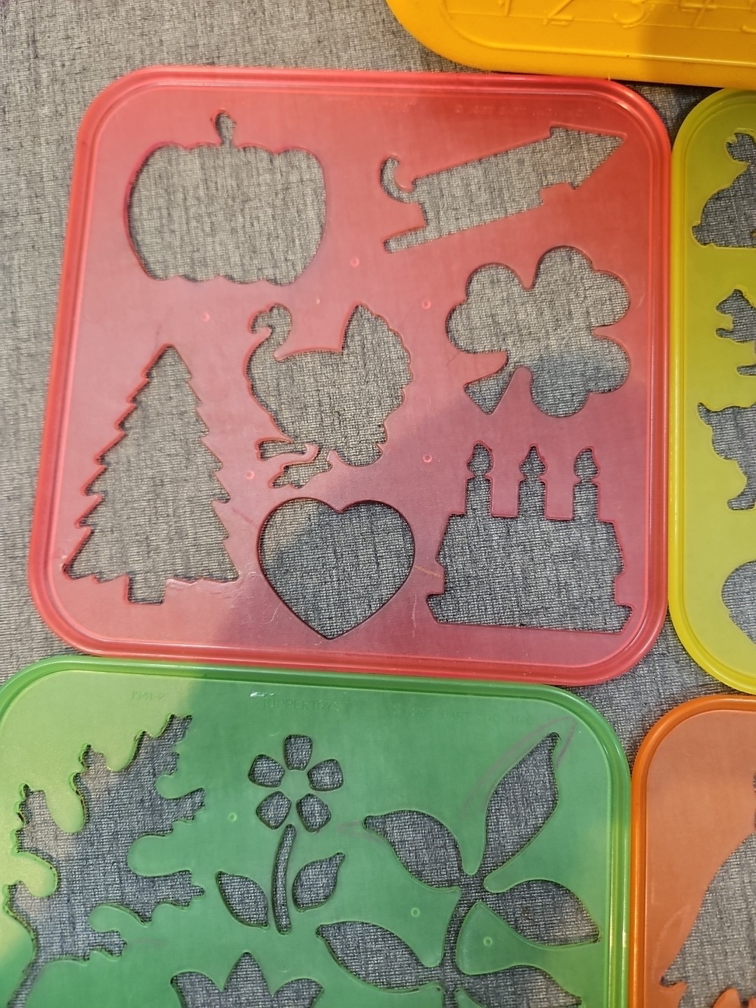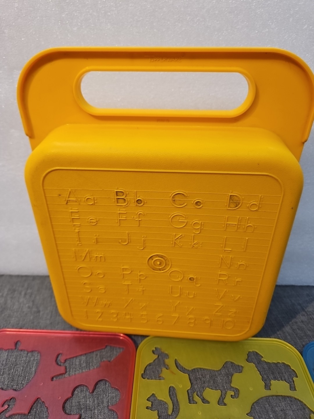 как выглядит VINTAGE TUPPERWARE TUPPERTOYS 8 STENCILS WITH YELLOW CASE фото