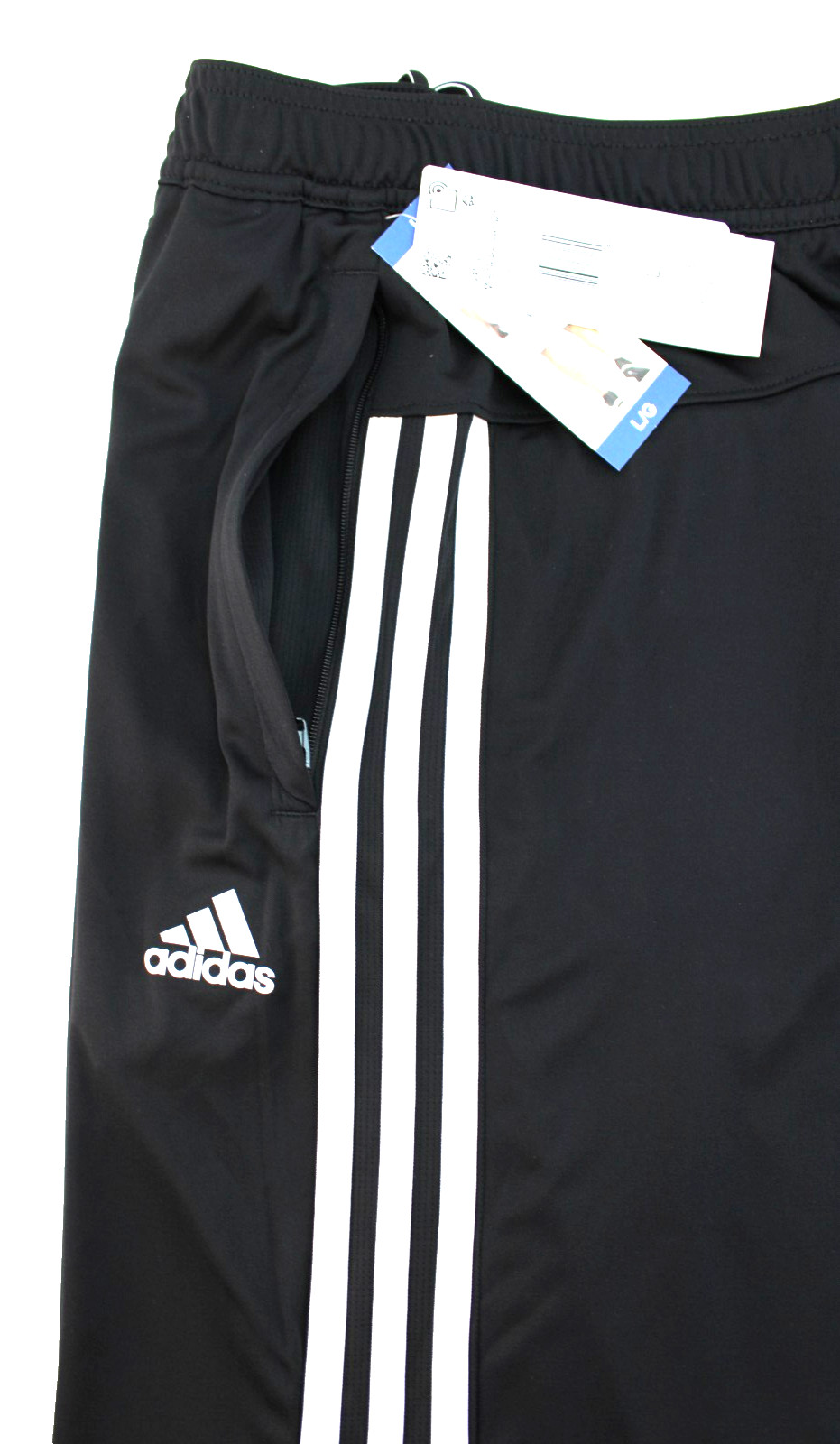 как выглядит New ADIDAS 3-Stripe Mens Large Black / White Stripes 2 Zippered Pockets Shorts фото