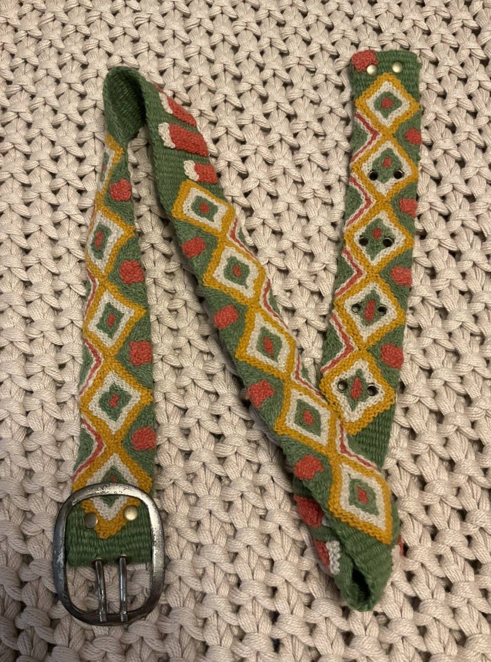 JENNY KRAUSS M Handwoven Boho Aztec Southwest Green Belt Made in Peru 100 Wool