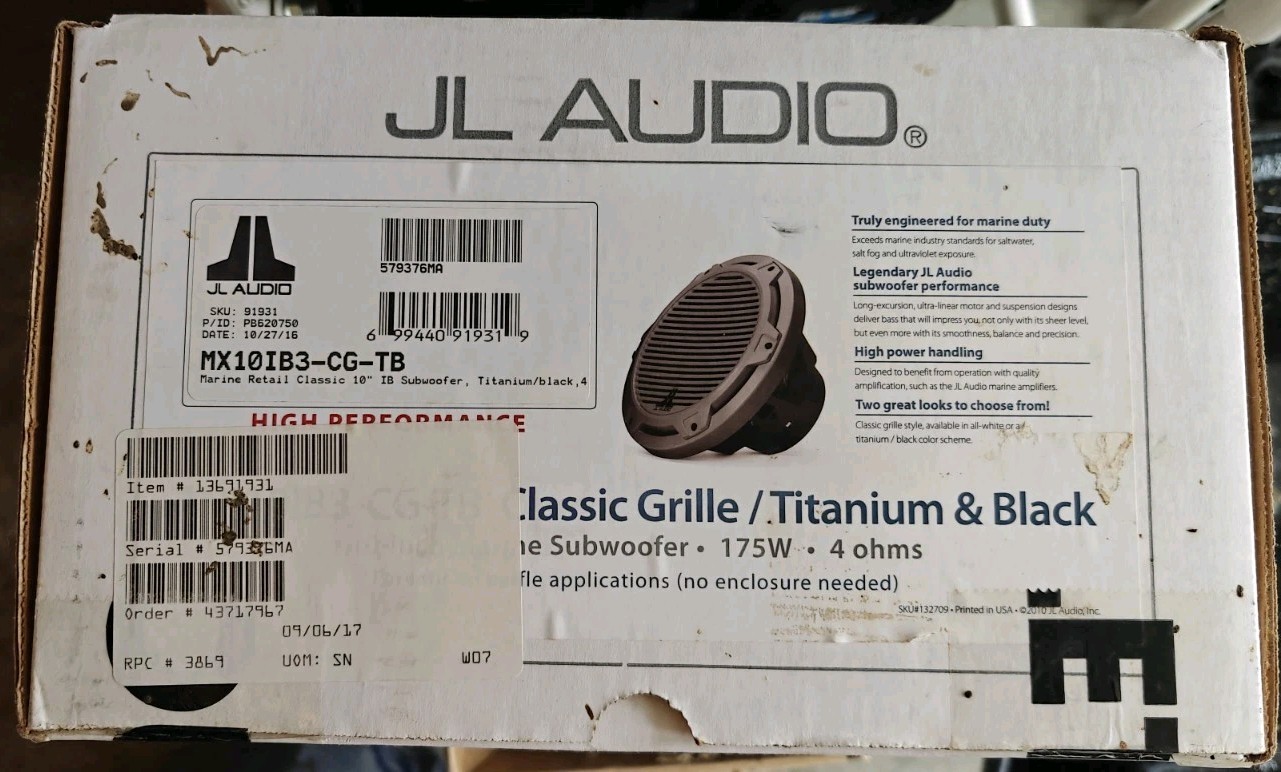 JL Audio MX10IB3-CG-TB 10-Inch Marine Subwoofer 175W Titanium Black Grille