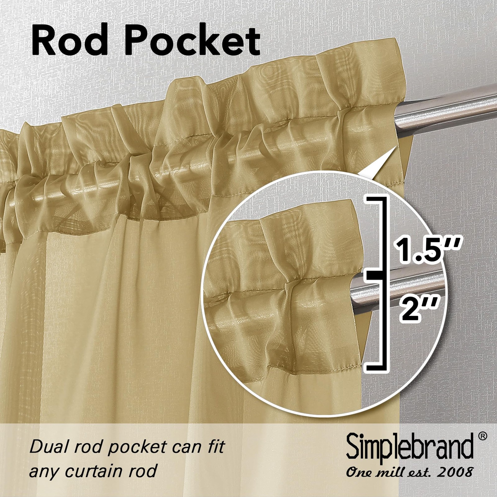 как выглядит Simplebrand Gold Sheer Curtains 84 Inches Long 42"W x 84"L Pack of 2 , фото