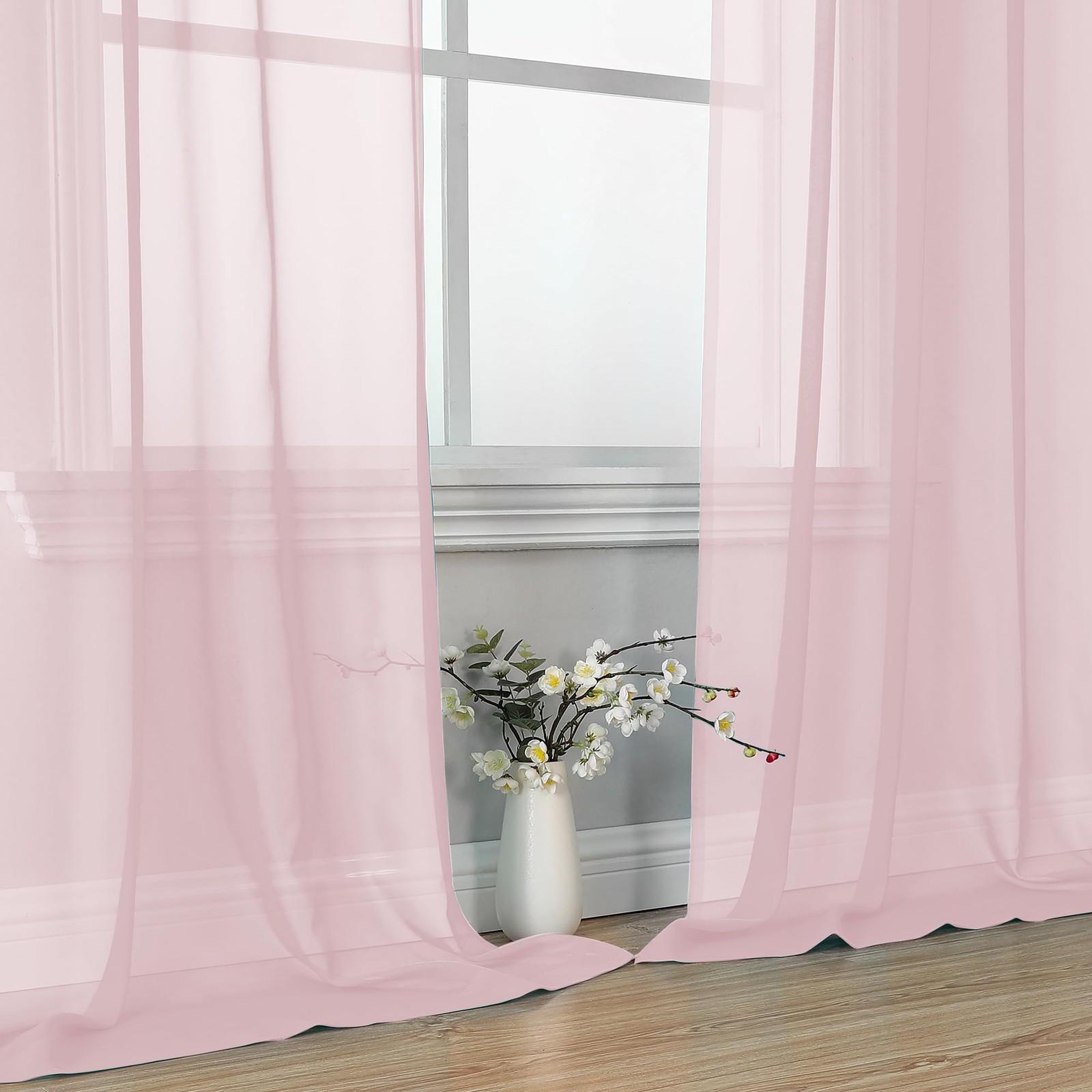 OVZME Blush Pink Sheer Curtains 84 Inches Long 42W x 84L Pack of 2 ,