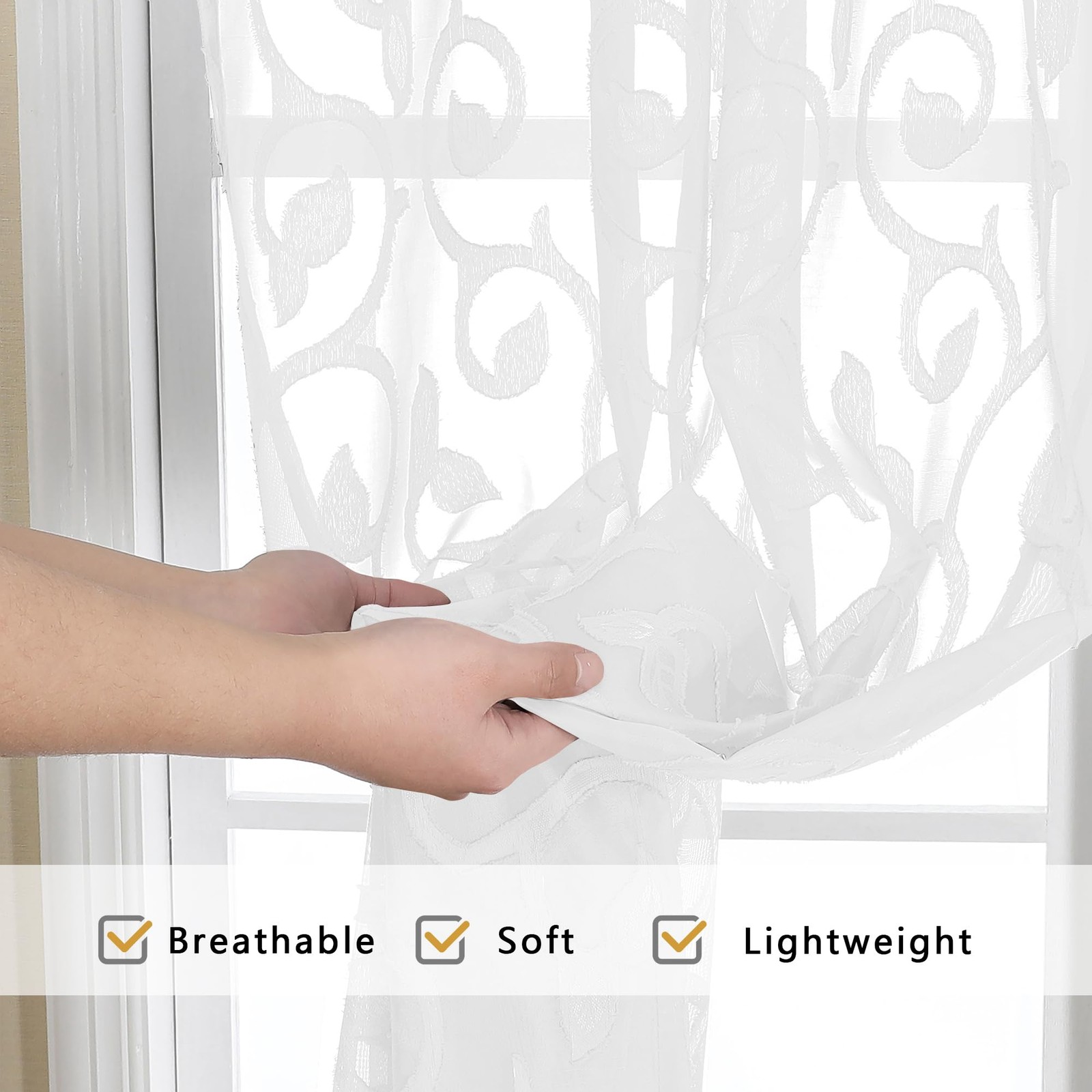как выглядит OWENIE Furman Sheer White Curtains 84 inches 40"W x 84"L Pack of 2 , фото