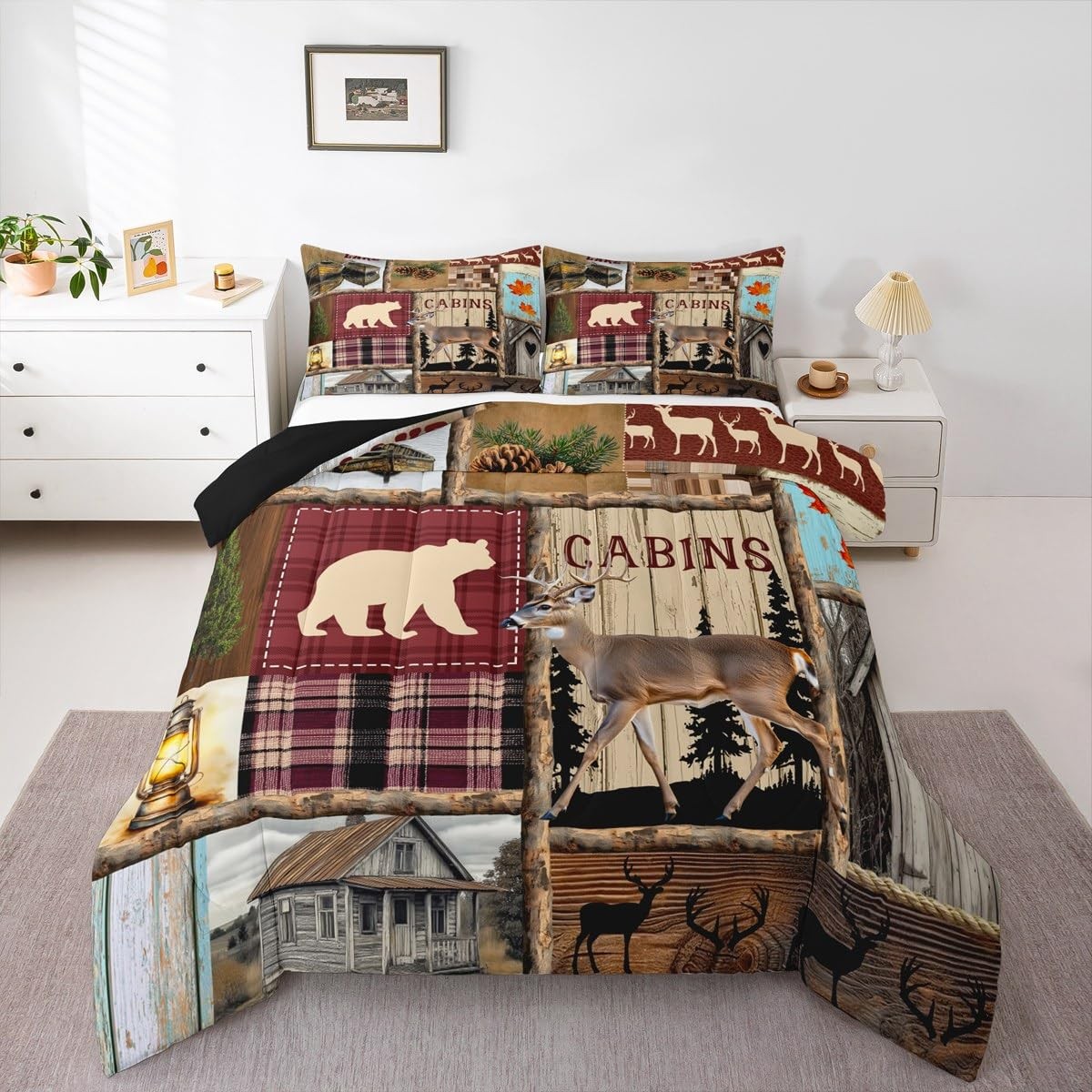 Cabin Deer Bedding Set Queen Size Kids Comforter Rustic Bear Cover for Boys G...