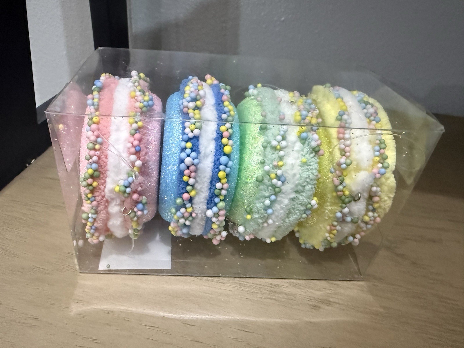 как выглядит Hobby Lobby Christmas Pastel Macaron Sweets Treats 4 PC Ornament Set NEW Candy фото