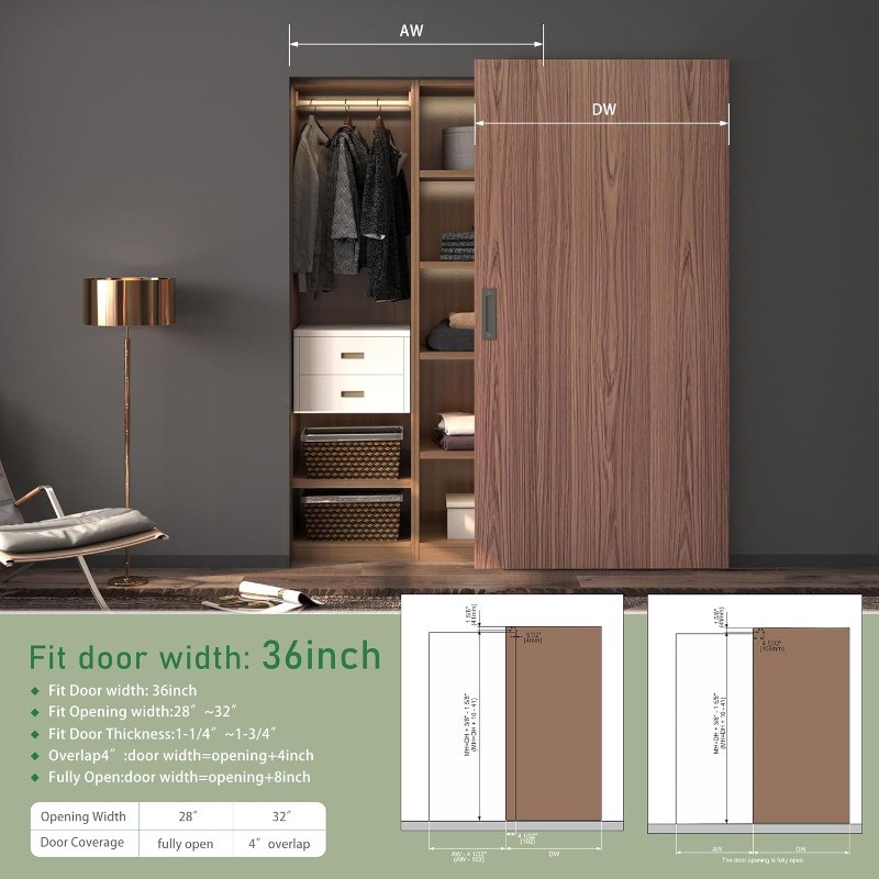 Barn Door Hardware Kit with Soft Close Mechanism,Invisible Wall Mount Aluminum