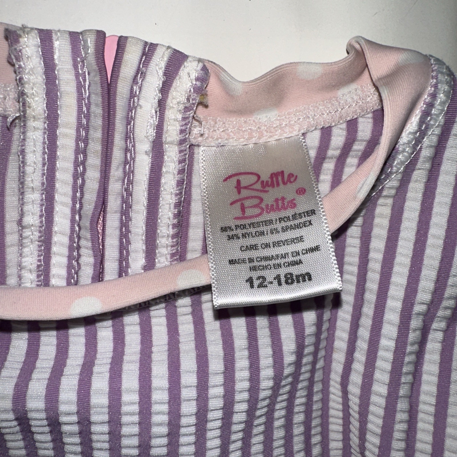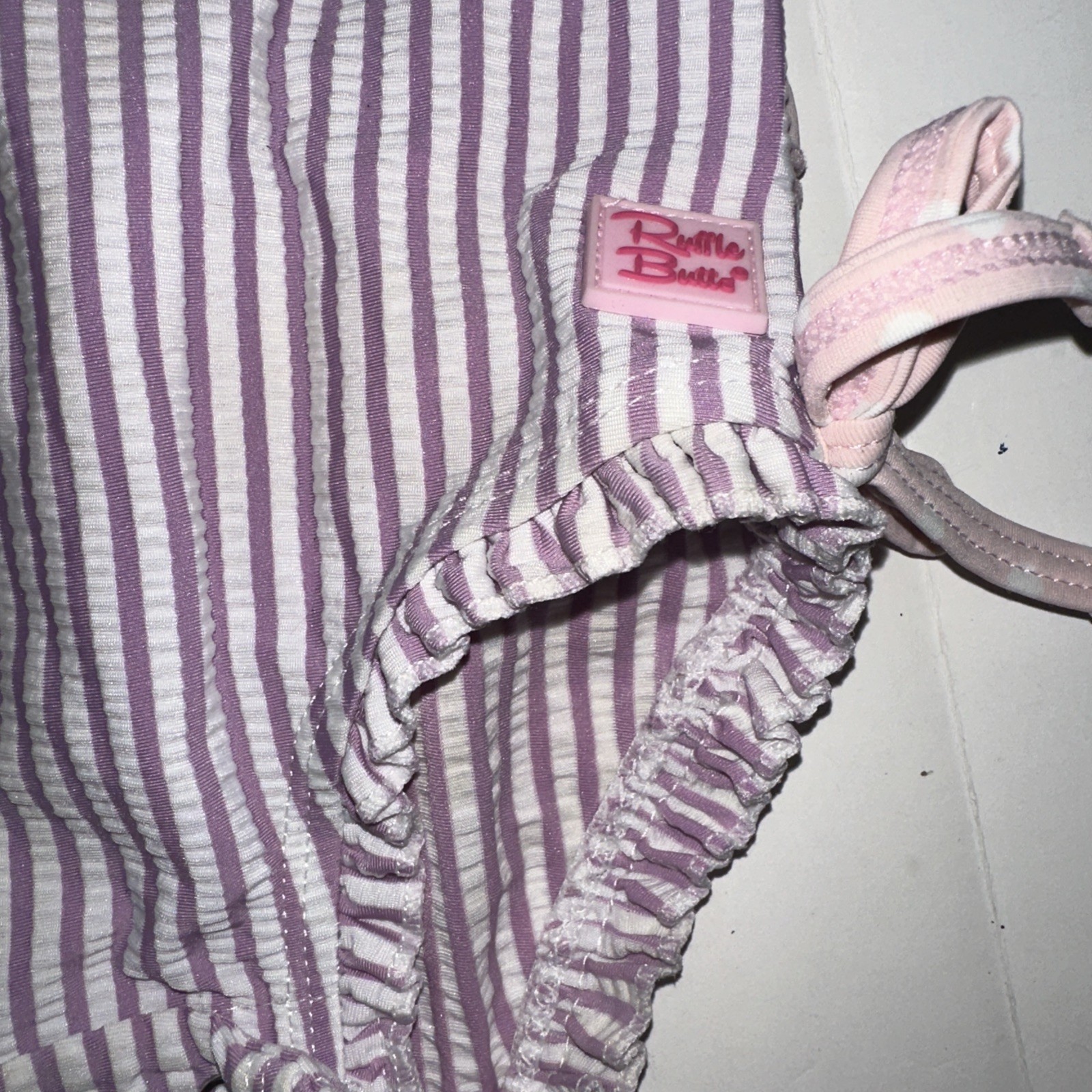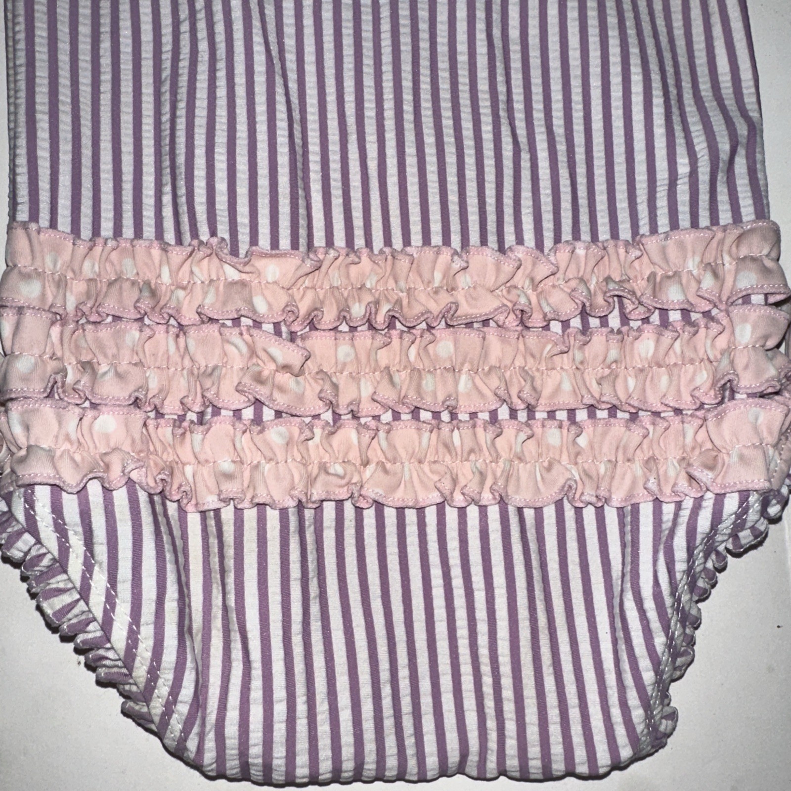 Ruffle Butts 12-18 MonthsPurple Pink Seersucker Rash Guard Bow Zip Snap Swimsuit