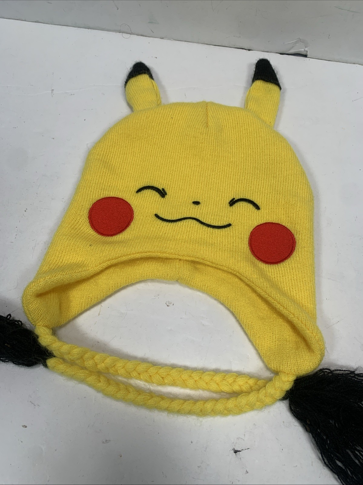 Pikachu Winter Hat Earflap Beanie Braided Tassels Pokemon One Size Fits Most