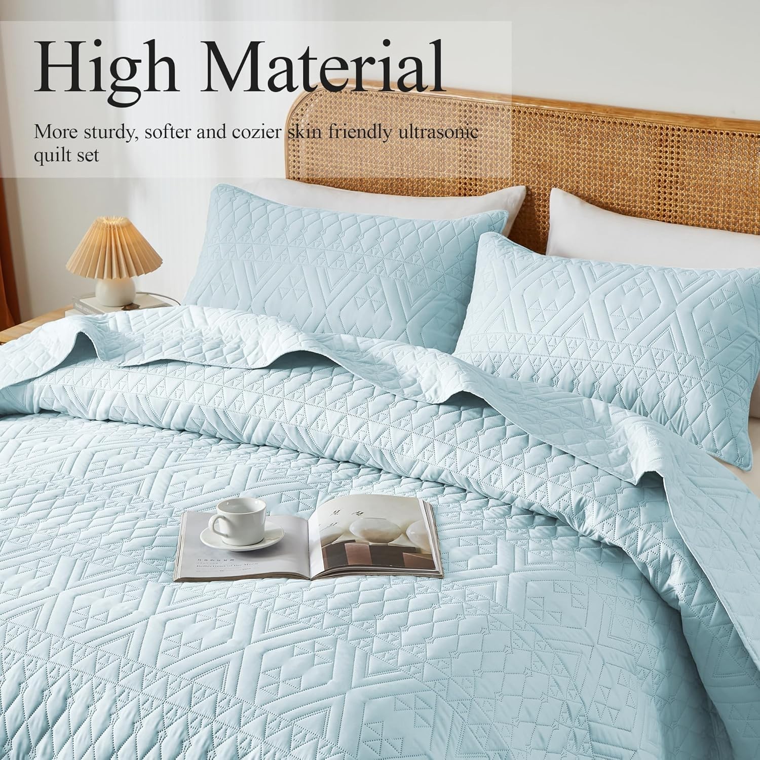 Twin Size NEW Quilt Bedding Set Sky Blue Lightweight Microfiber Soft Bedspread