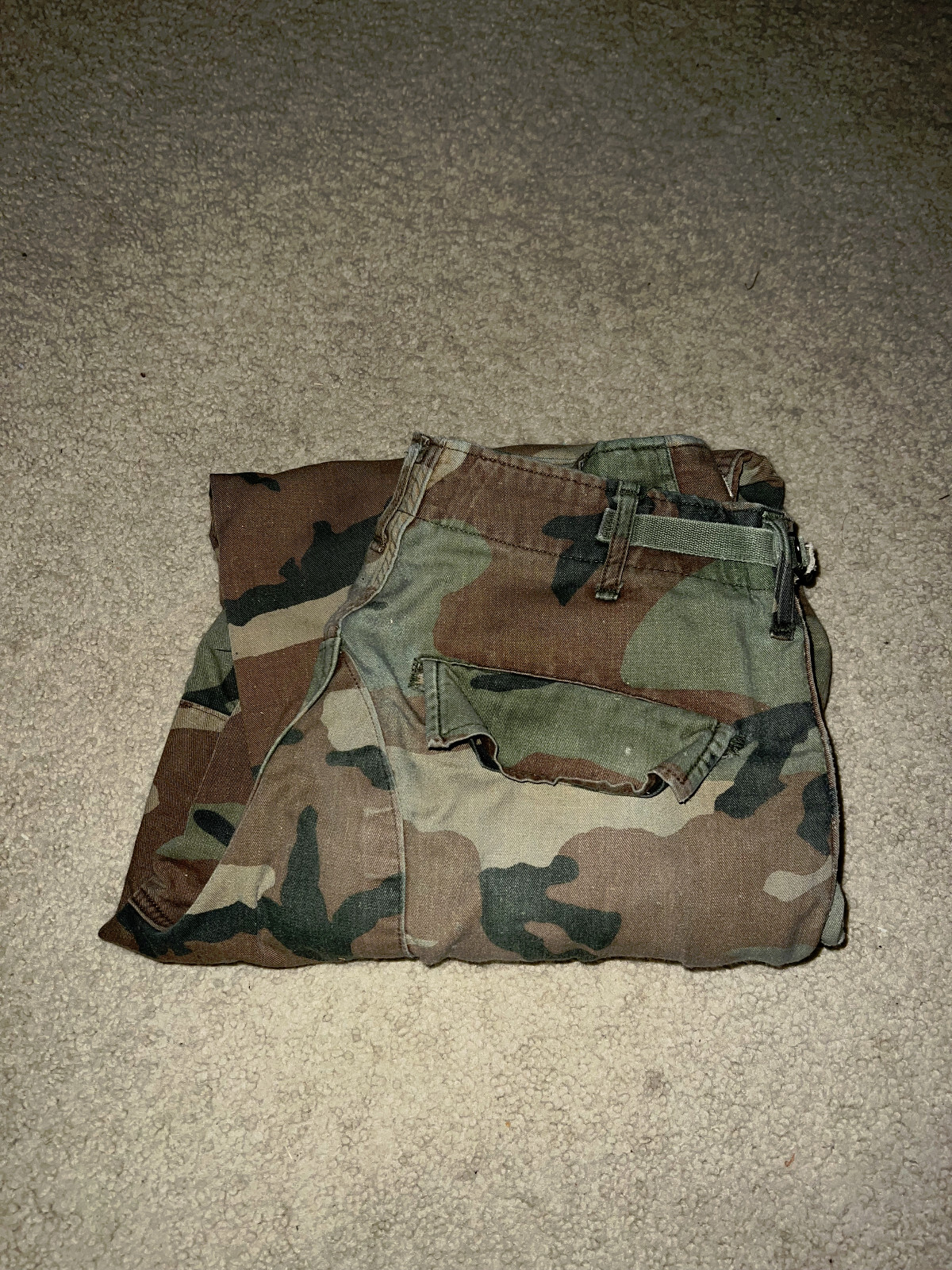 • VTG -Army Woodland CAMO Cargo Combat Military Fatigue Pants SMALL SHORT - FADED