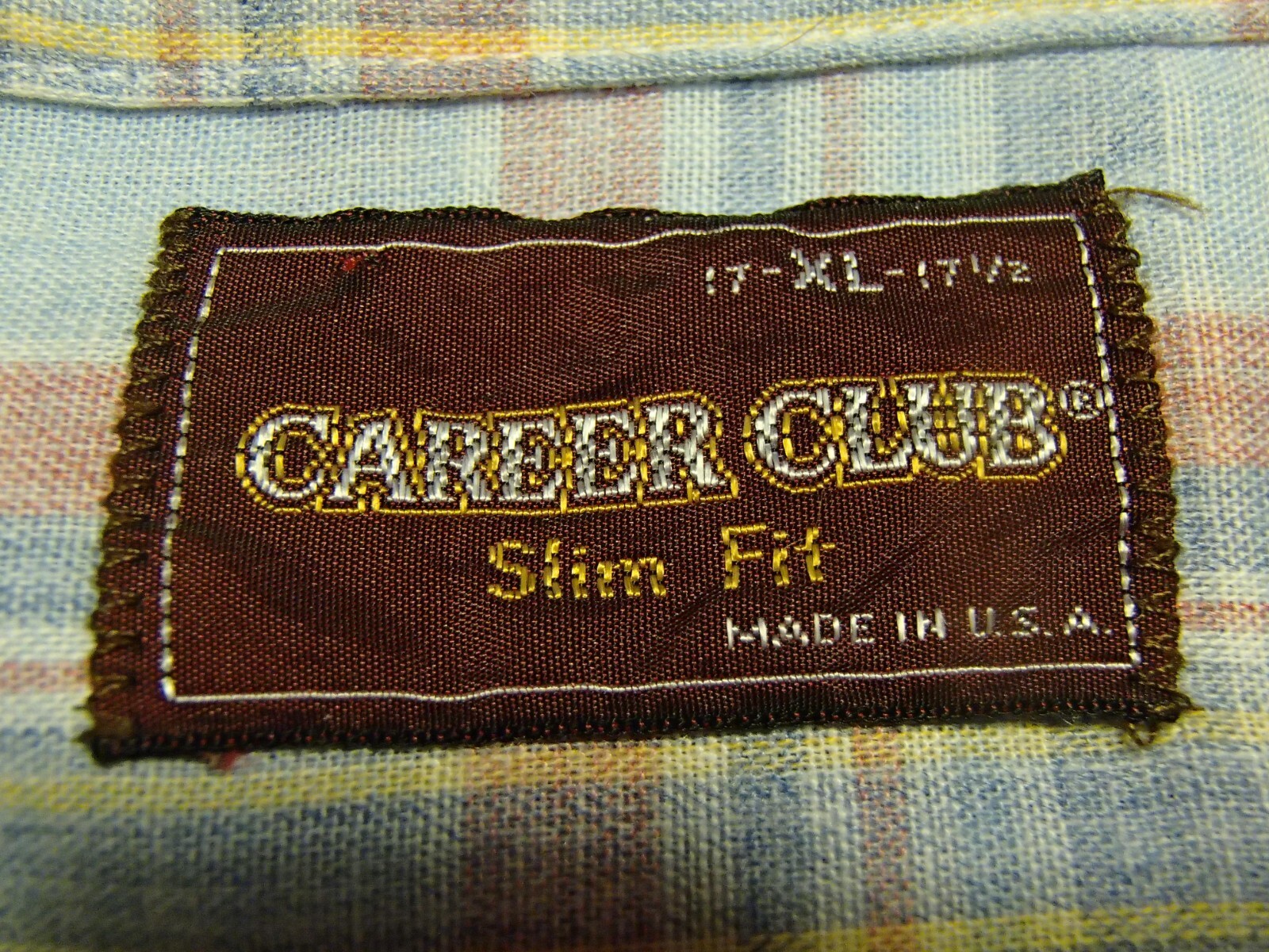 vtg 70s CAREER CLUB shirt pastel plaid USA MADE dagger collar men XL 17 - 17 1/2