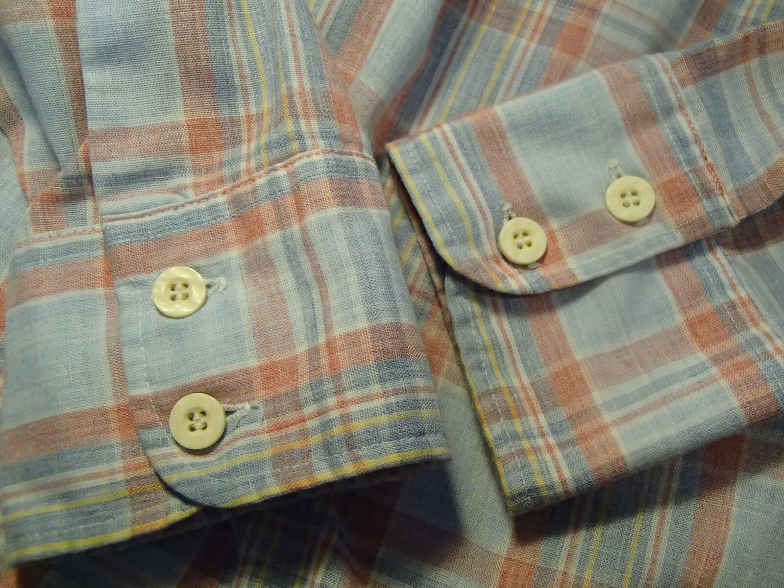 как выглядит vtg 70s CAREER CLUB shirt pastel plaid USA MADE dagger collar men XL 17 - 17 1/2 фото