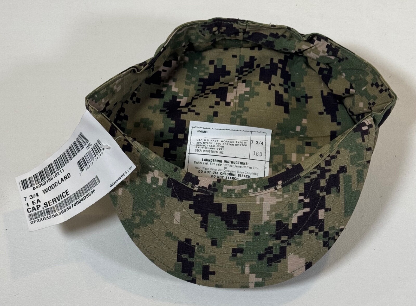 New USN NWU Type III AOR2 Digital Woodland Utility 8 Point Cap Hat Size 7 3/4