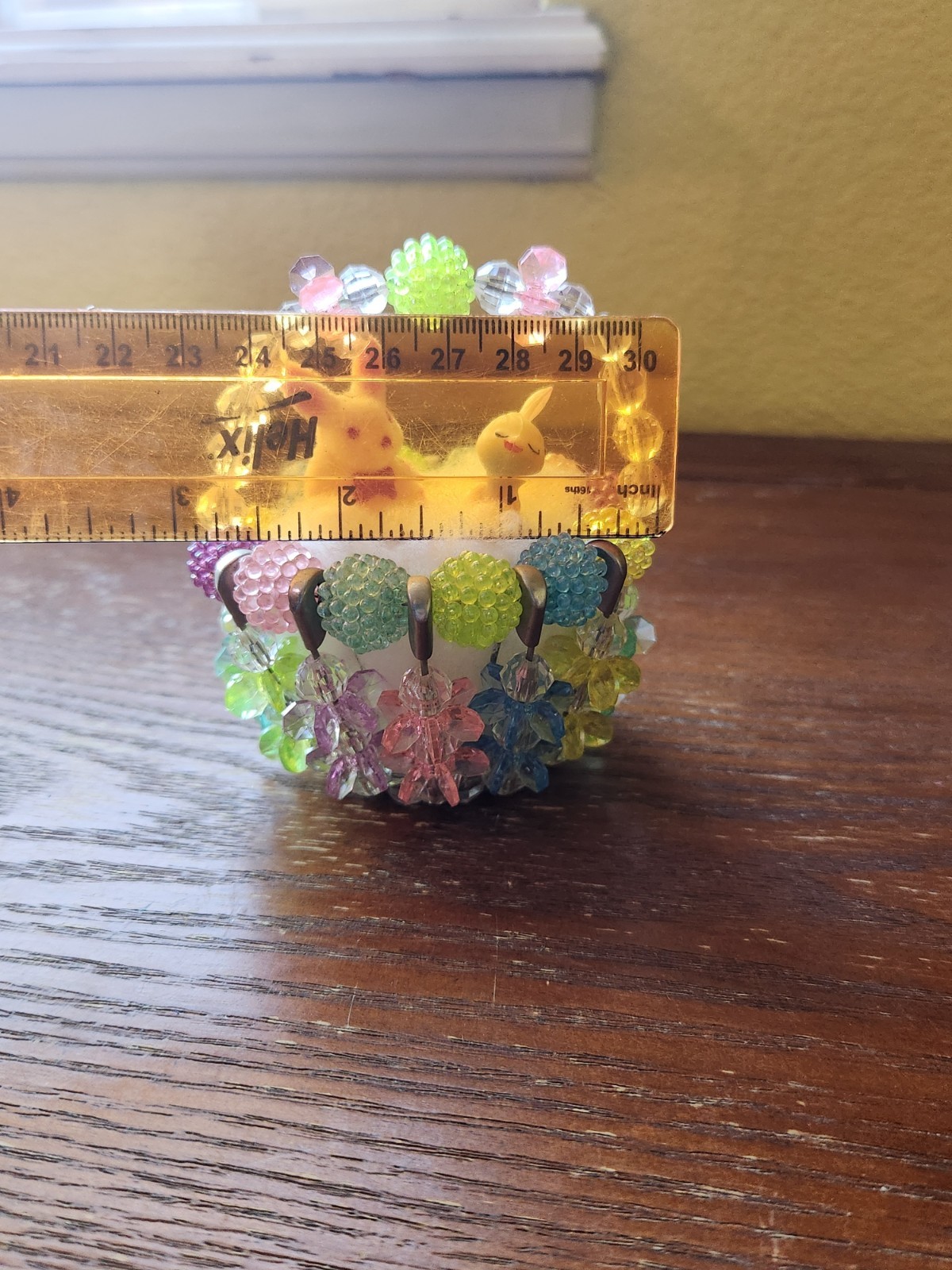 как выглядит Retro Safety Pin Art Beaded Easter Basket with Bunnies Colorful Handmade фото
