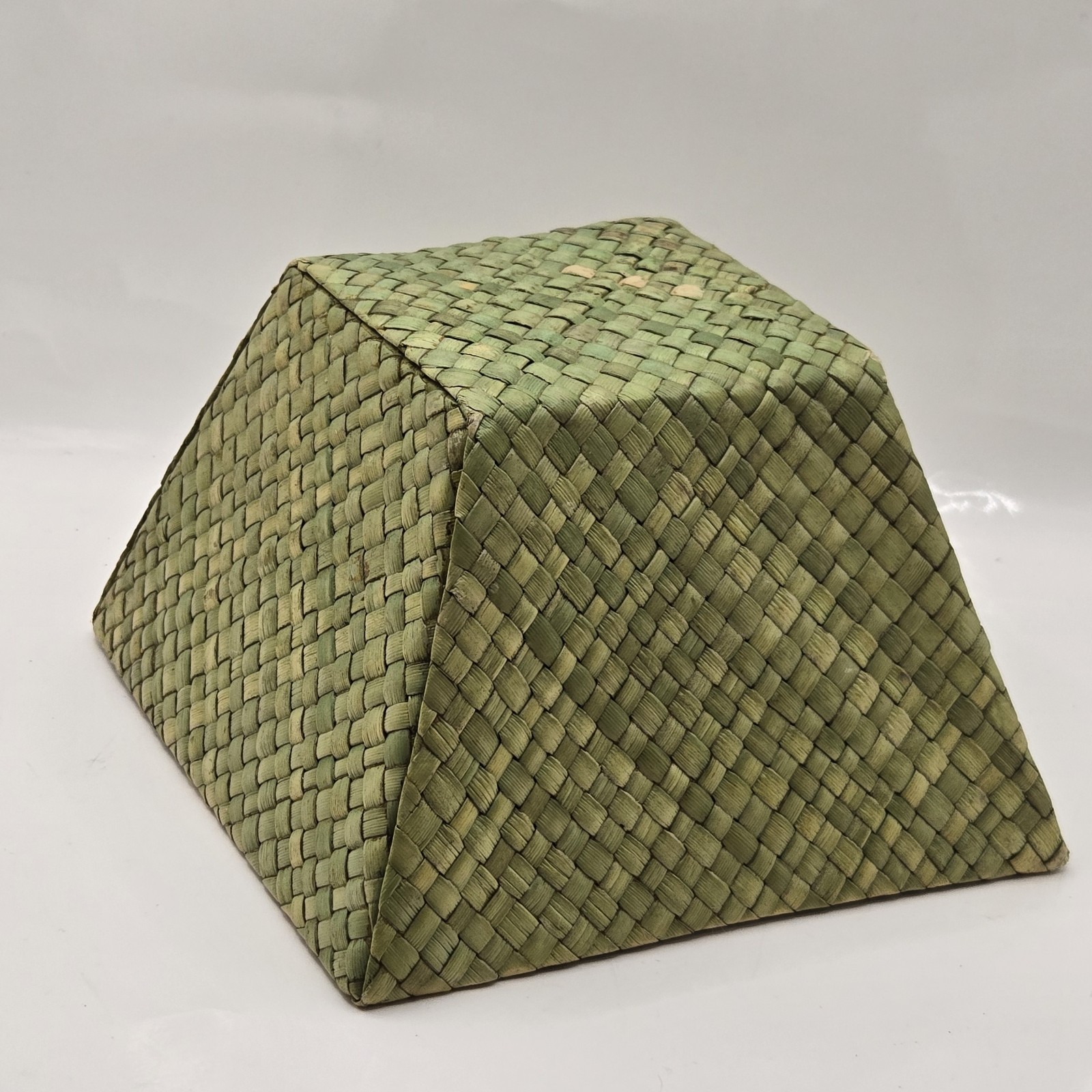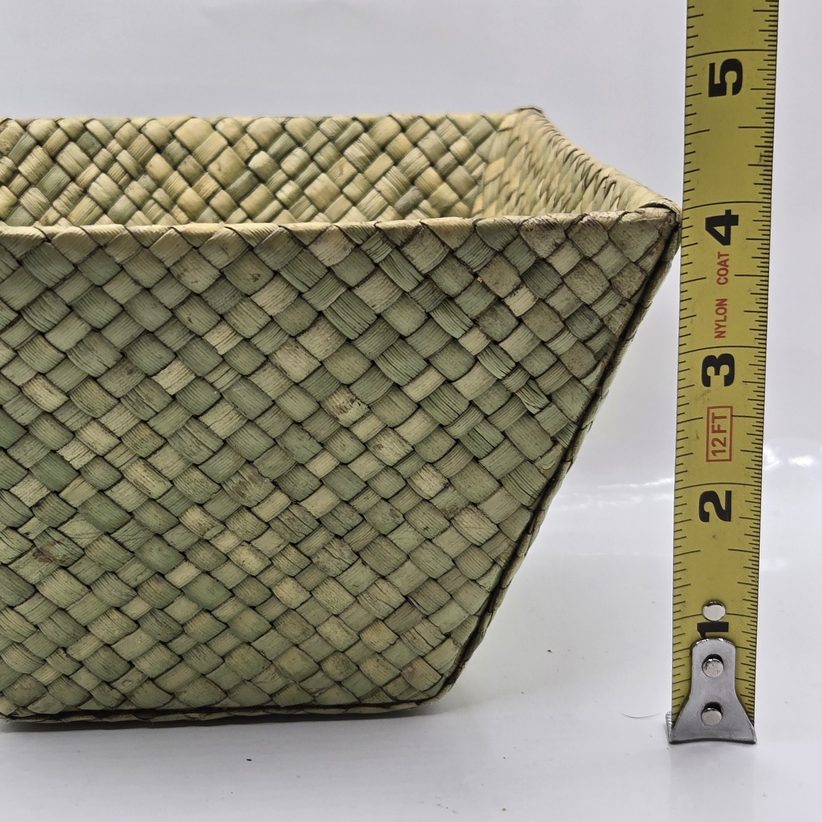 VTG GREEN Soft Woven Square Bamboo Basket Slanted Sides Countertop Small Basket