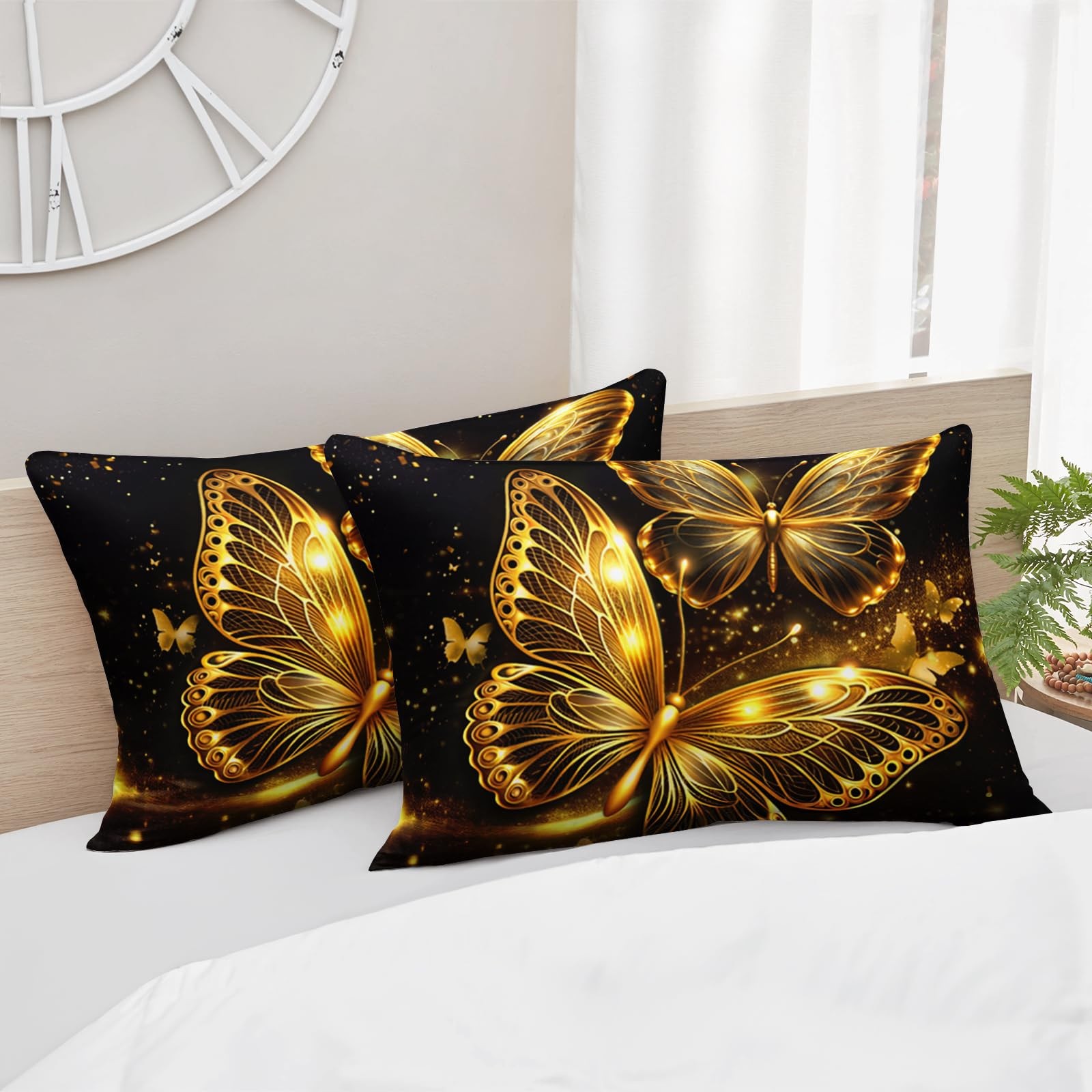 Girls Butterfly Bedding Set Queen Size,Black and Gold Duvet Set Room Decor,Sp...