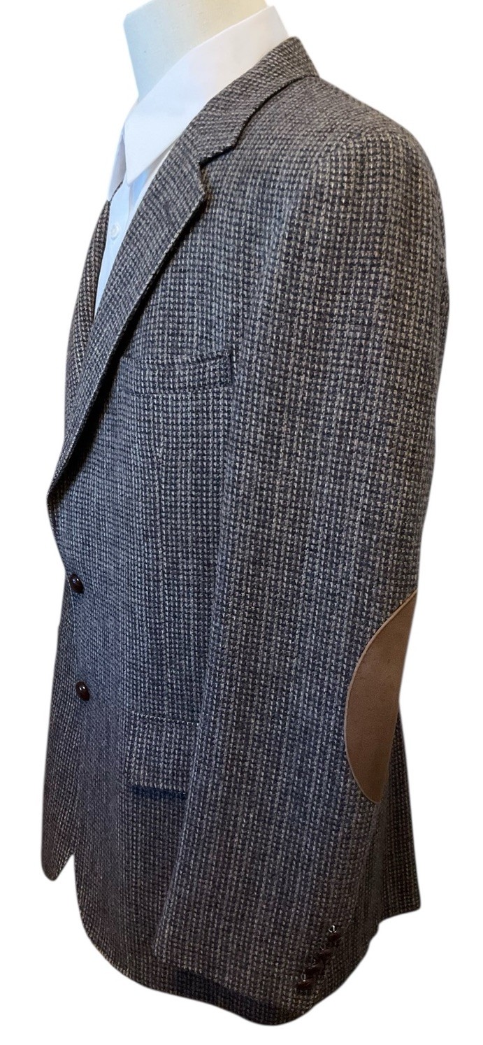 Vtg CRICKETEER 44 Tweed Check Wool Elbow Patch Brown Lined Blazer USA Union