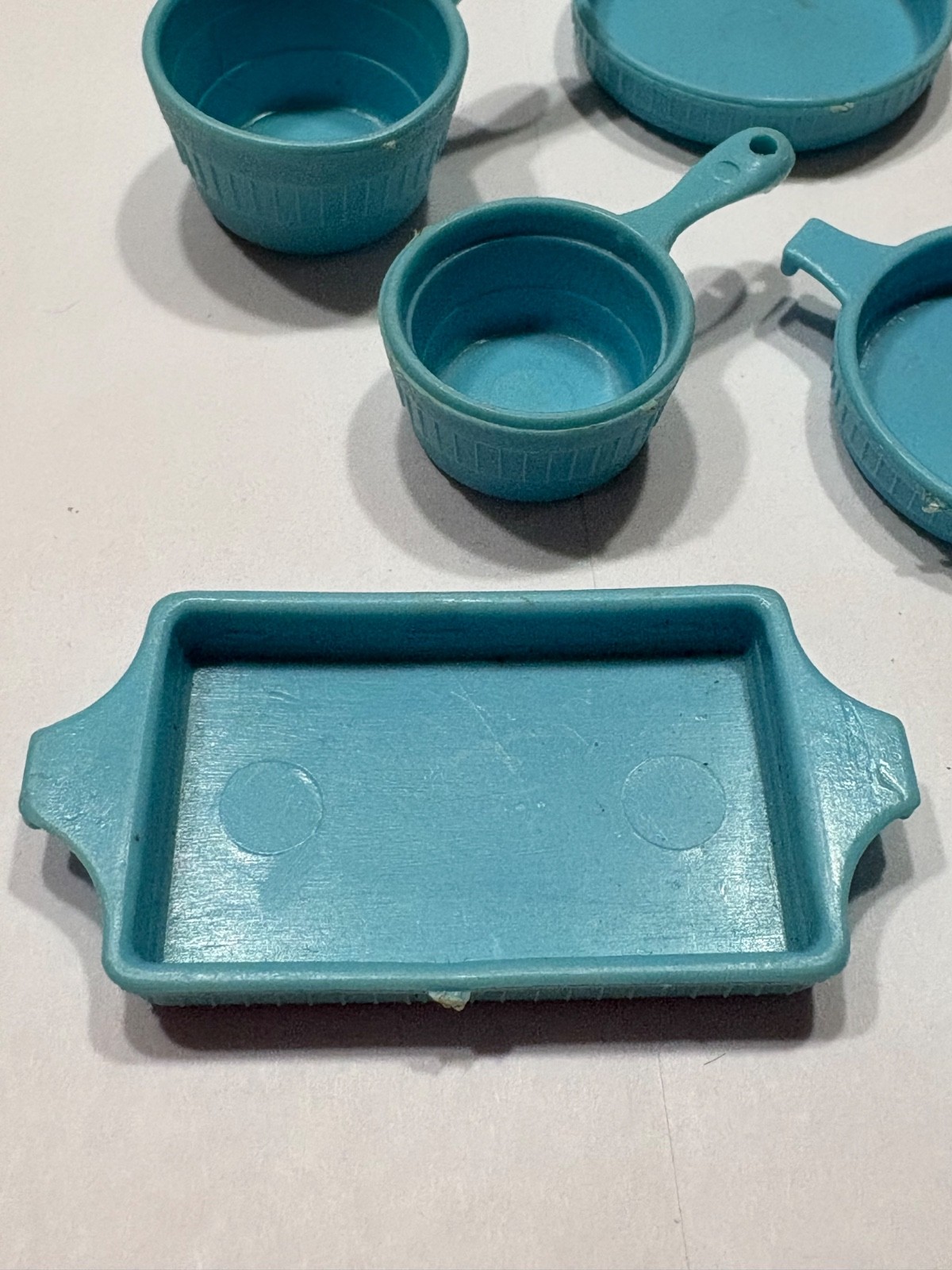 Barbie Dream Kitchen food, blue pots pans, and roast chicken SEE ALL PICS