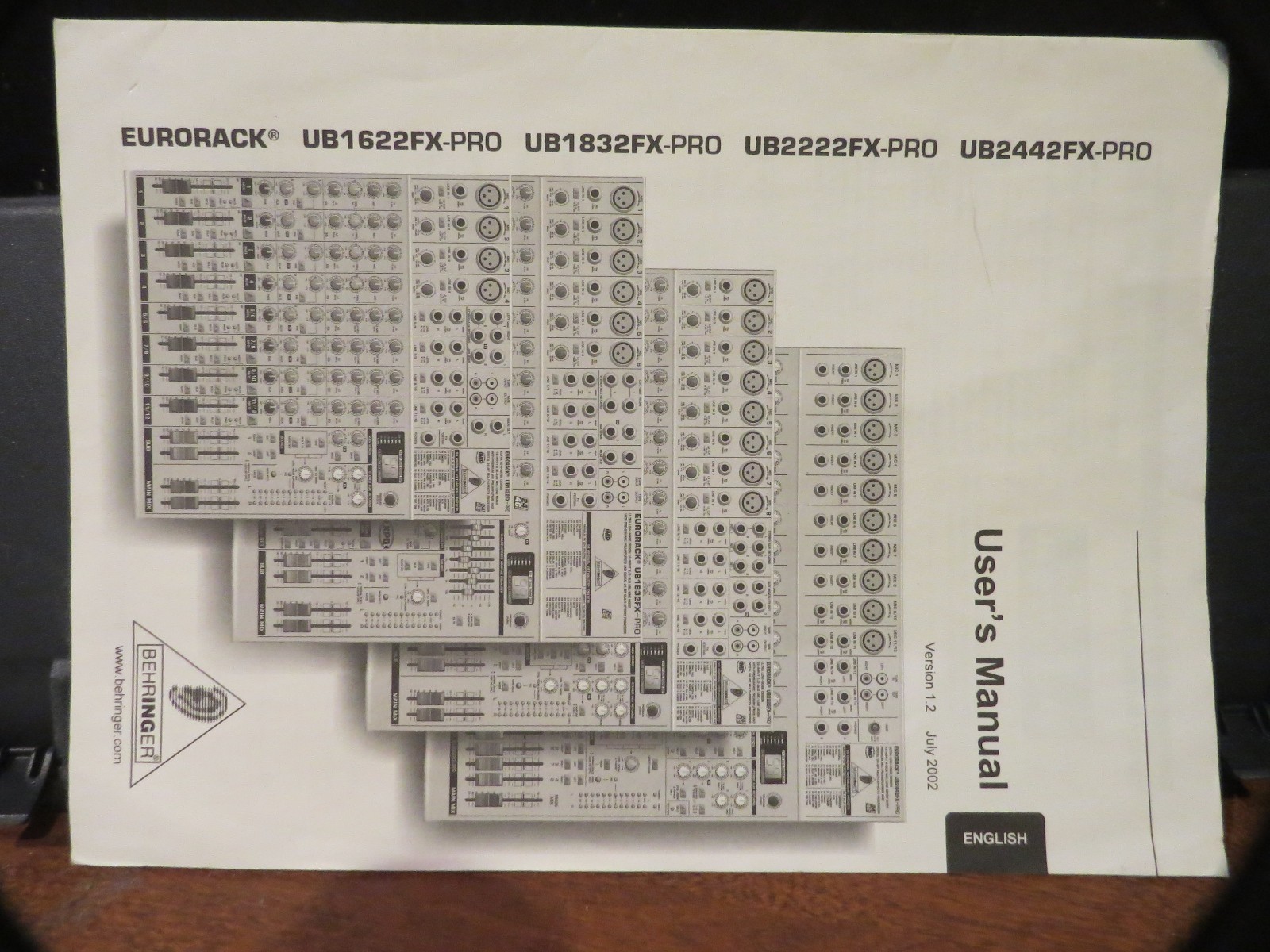 как выглядит BEHRINGER EURORACK UB1622FX-PRO/UB2222FX-PRO/UB2442FX-PRO MANUALS ENG/OTHER фото