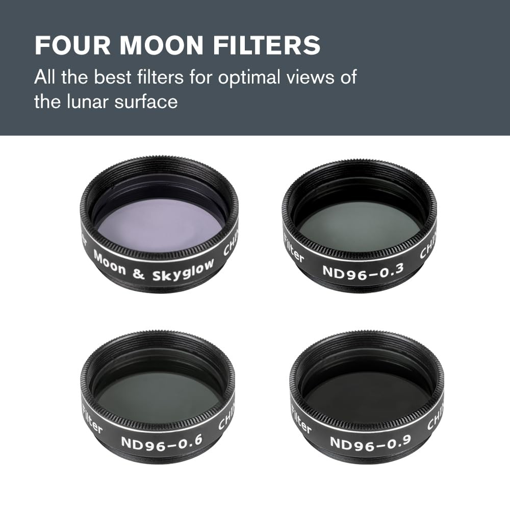 Moon Filter Kit Fits 1.25' Telescope Eyepieces Includes 4 Neutral Densi...