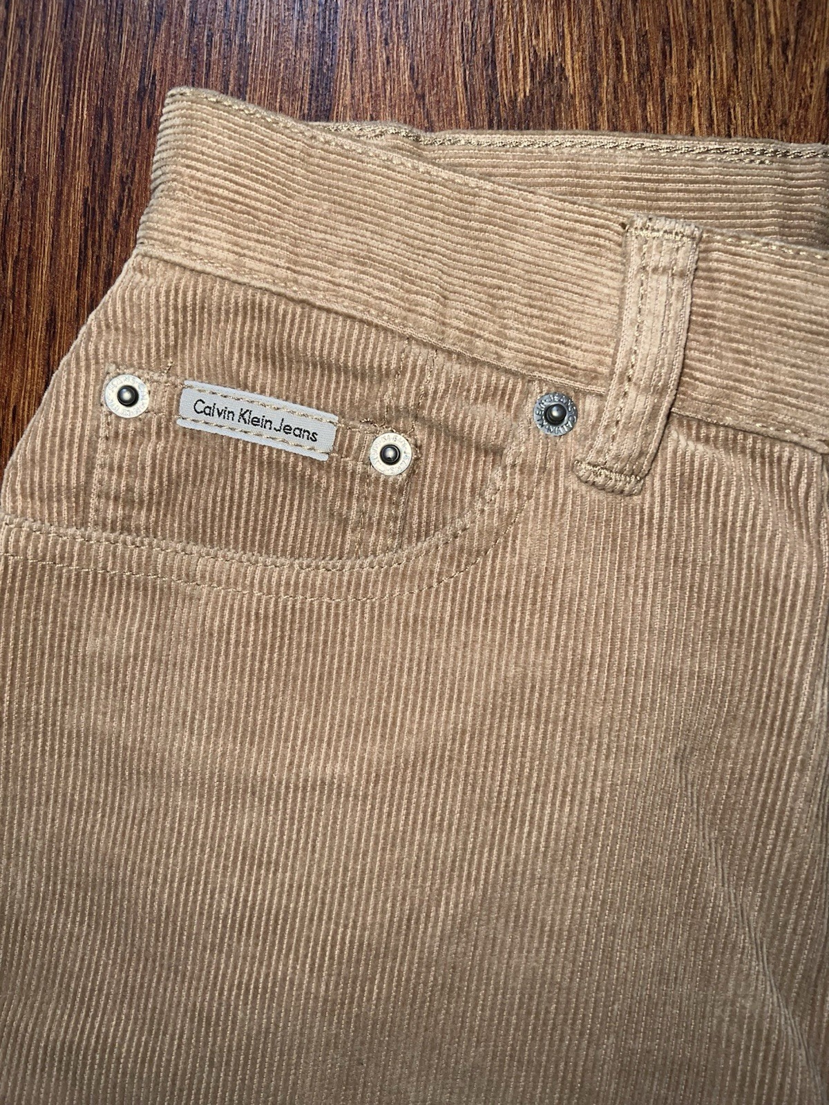 как выглядит Vintage Calvin Klein Jeans Womens 10 Tan Corduroy High Rise Straight Pants 90s фото