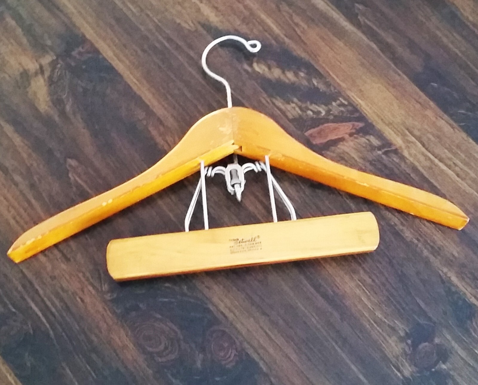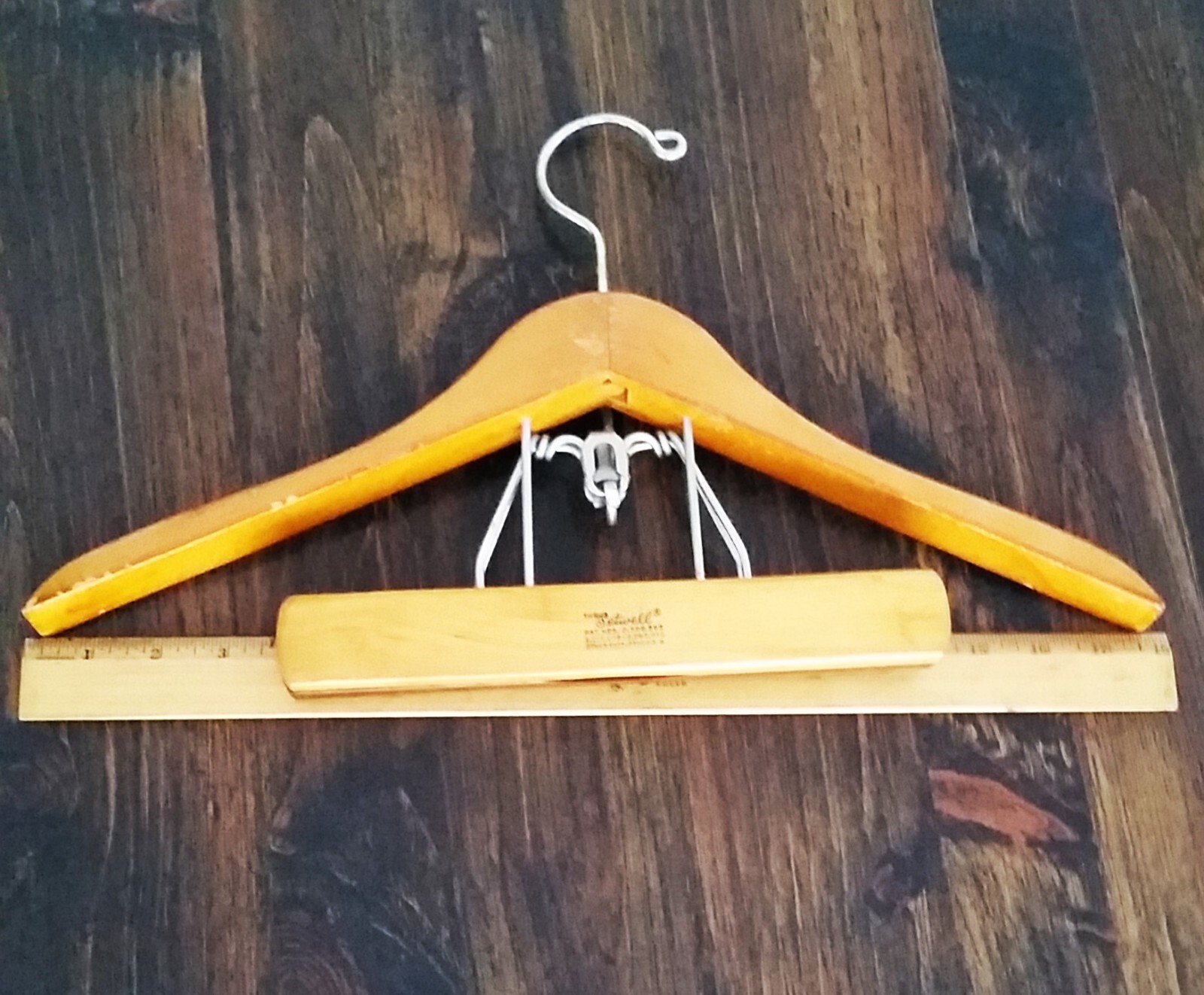 Vintage The Setwell 18 Inch Wooden Heavy Duty Suit Valet Hanger Pat. No. 5.2,58