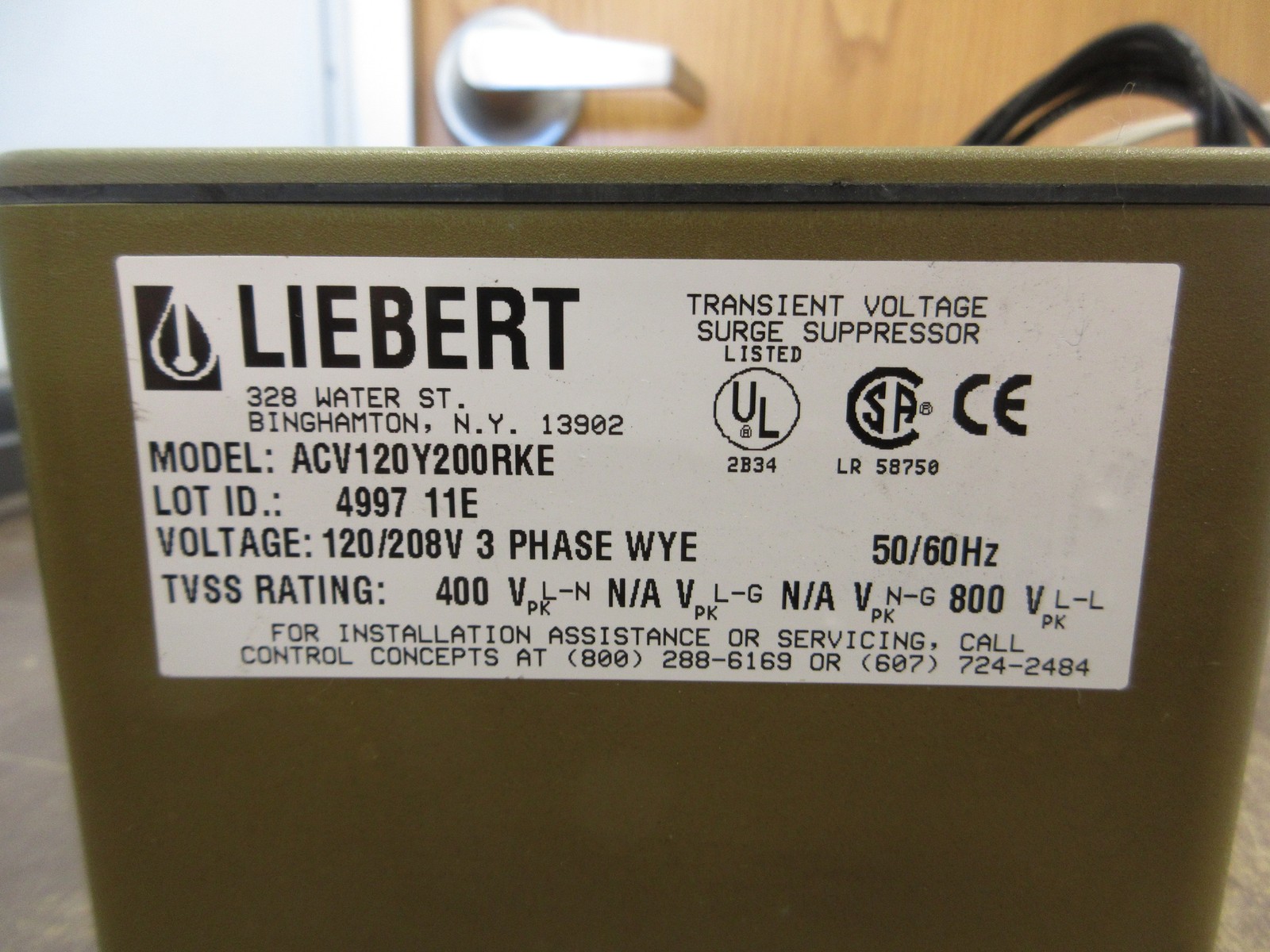 Liebert AccuVar Surge Suppression System ACV120Y200RKE 120/208V 3Ph 50/60Hz Used
