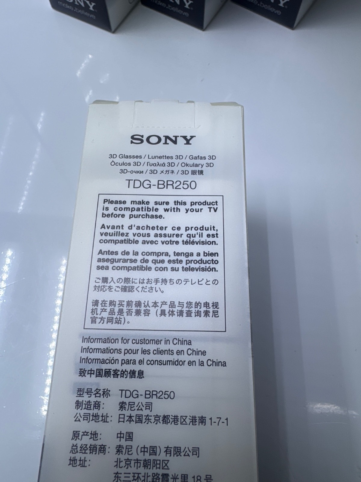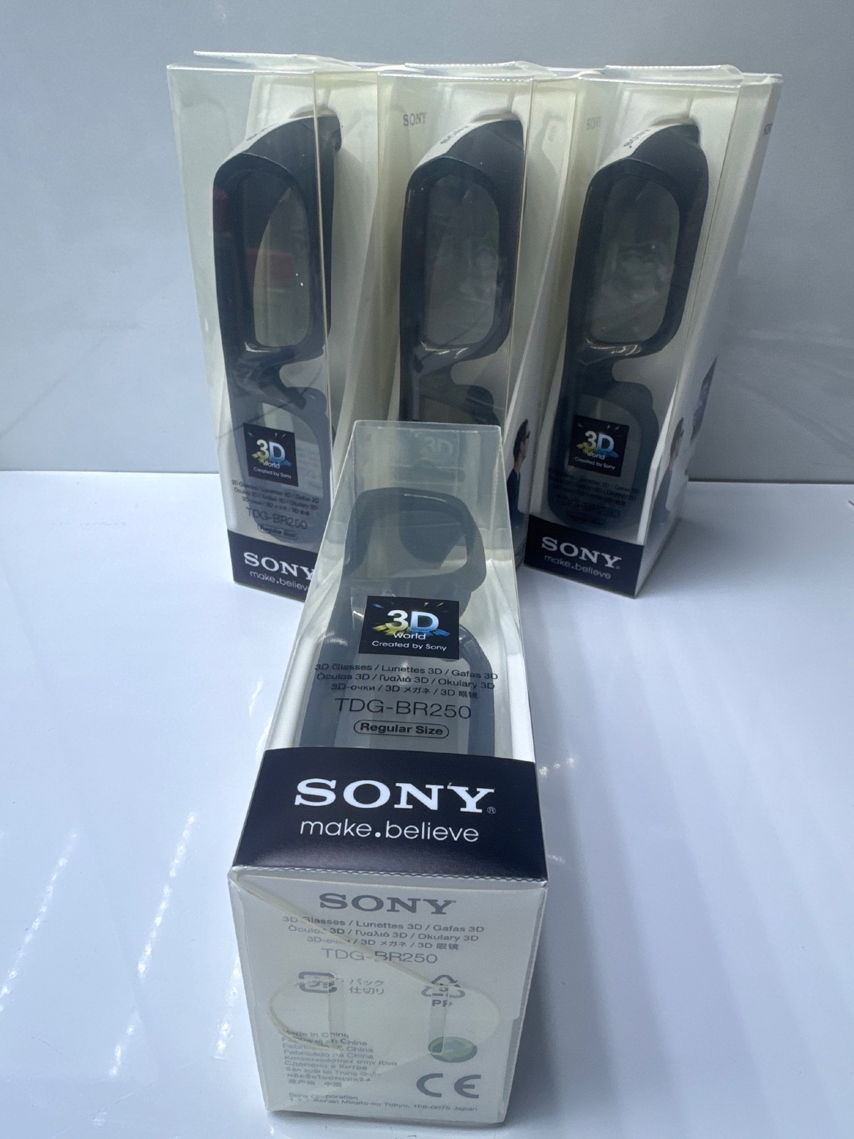 Lot 3 PCs Sony TDG-BR250 Active 3D Glasses , Regular Size White Black Color