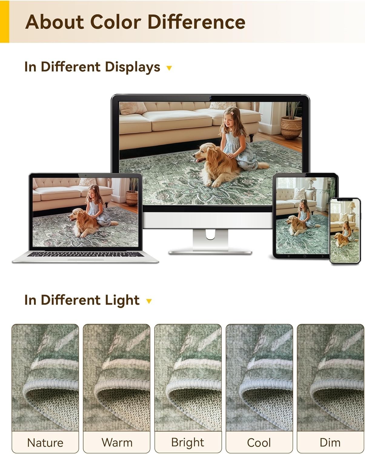 Area Rugs 5'x7' Washable Non-Slip, Floral Vintage Distress Print Pattern Meda...