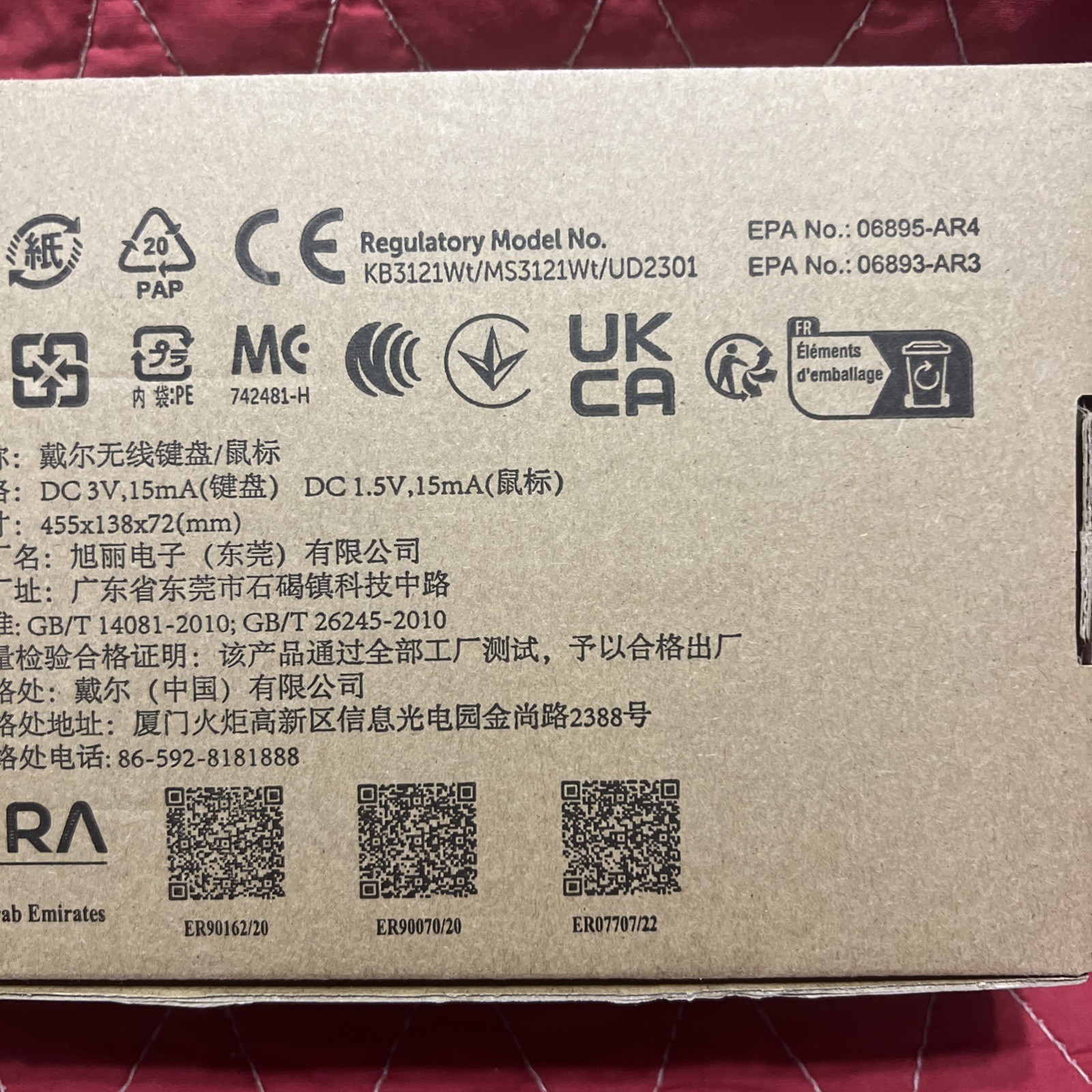 Dell KB3121Wt Wireless Full Size Keyboard Mouse Combo