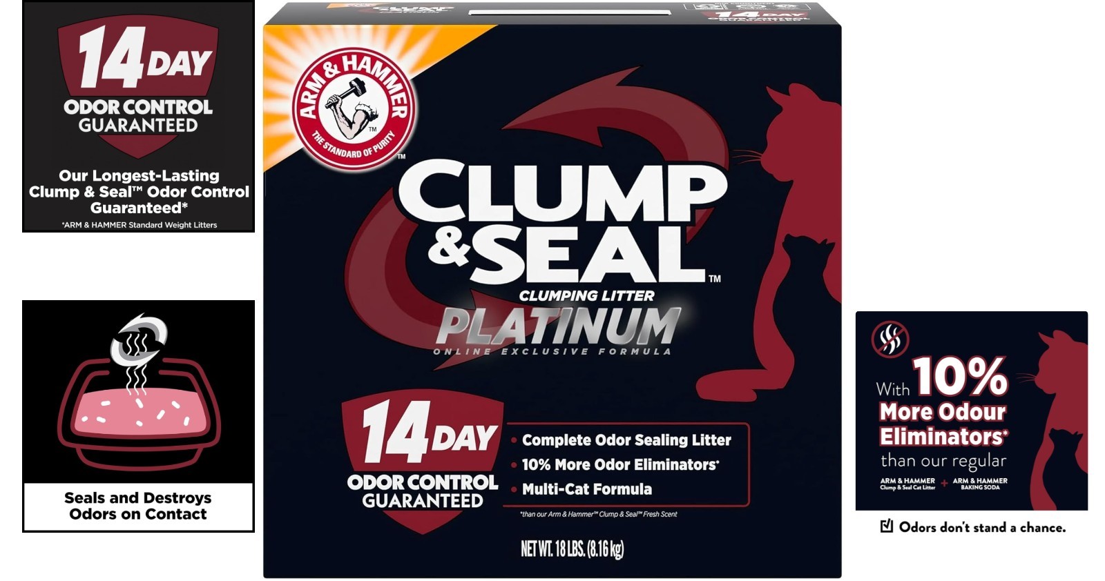 Clump Seal Platinum Cat Litter, Multi-Cat, 14-Day Odor Control, Rock-Hard C...