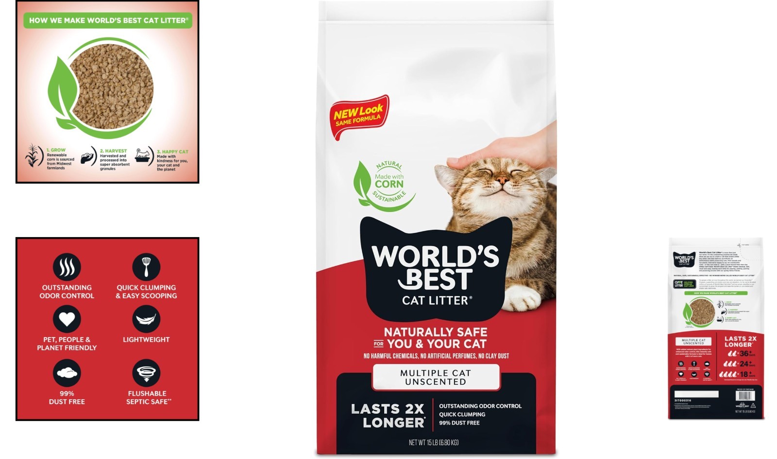 Multiple Cat Unscented, 15-Pounds - Natural Ingredients, Quick Clumping, Flus...