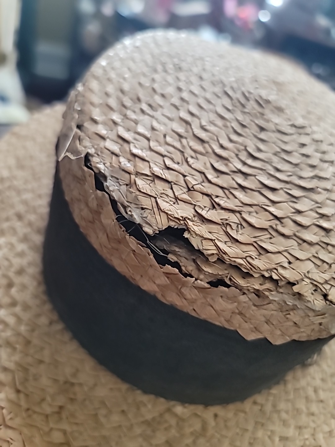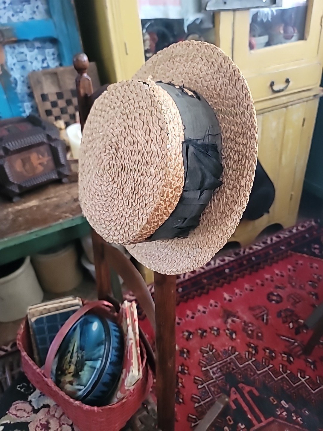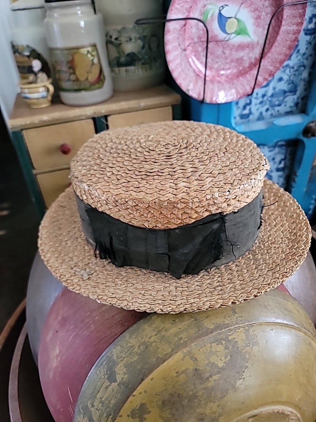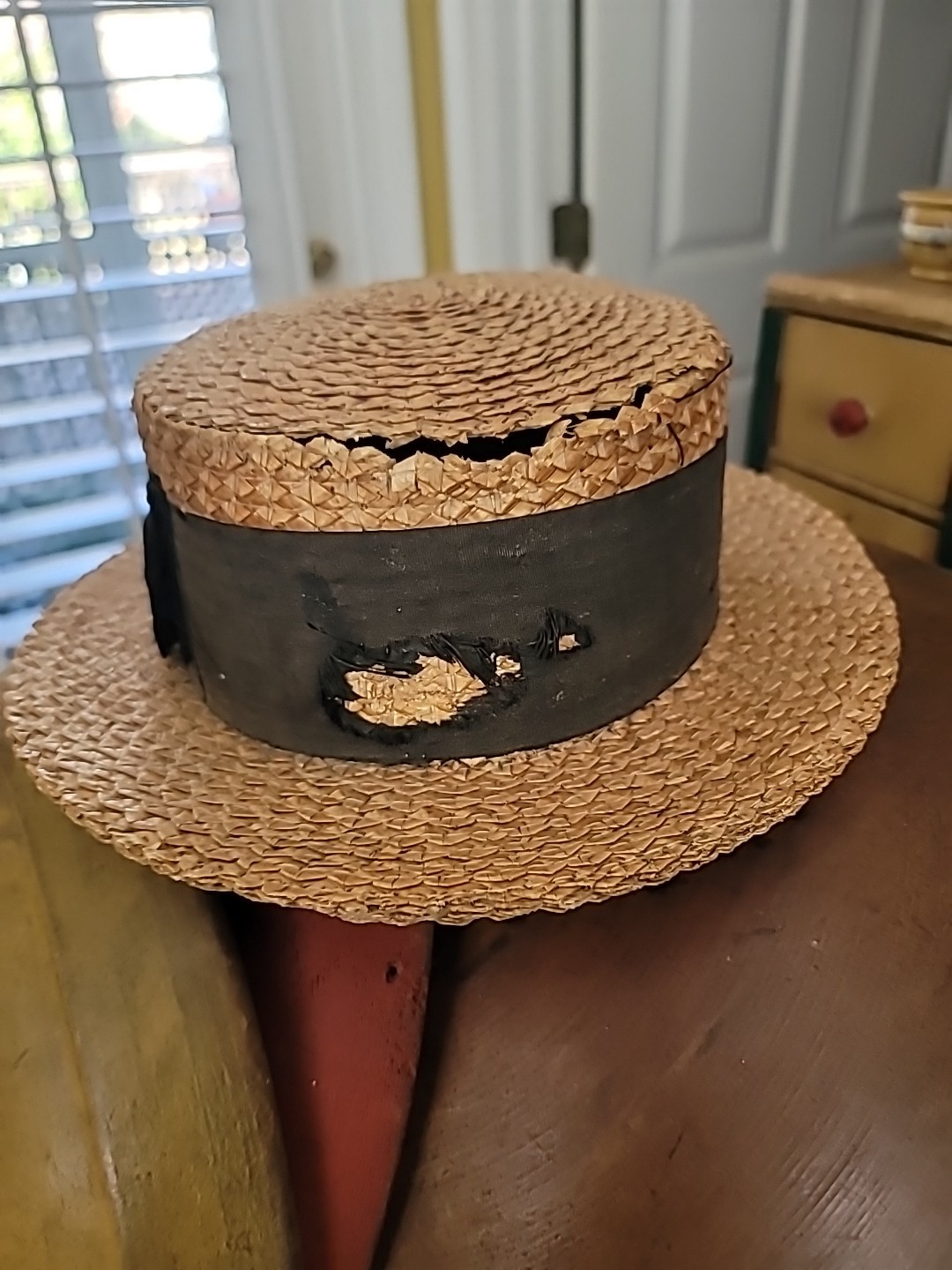 как выглядит Antique Hat Straw Boater Mans All Original Decorative Only фото