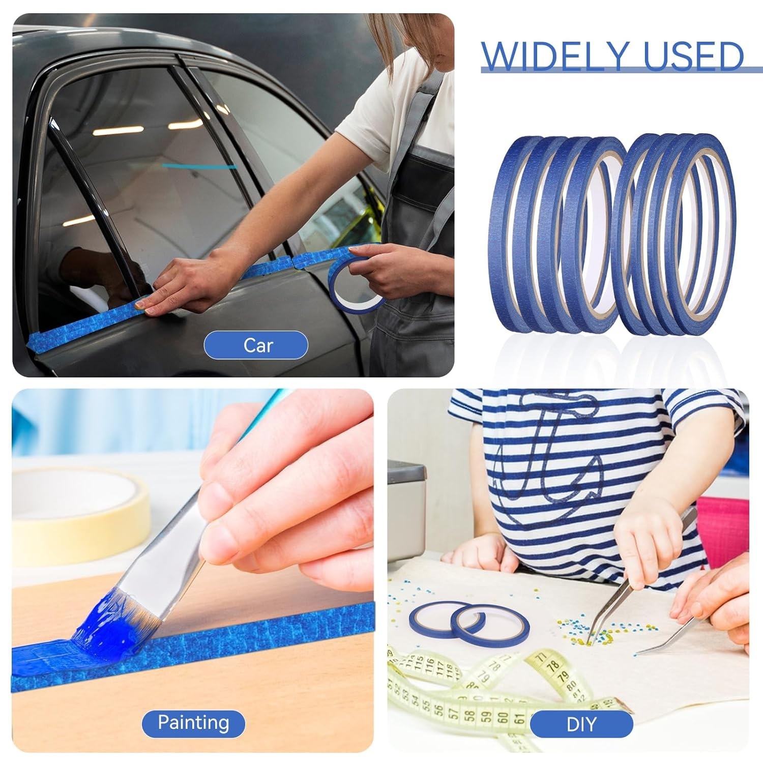 8 Rolls Pinstripe Tape Thin Painters Tape Masking Tape in 1/8, 1/4 Inch Line Tap