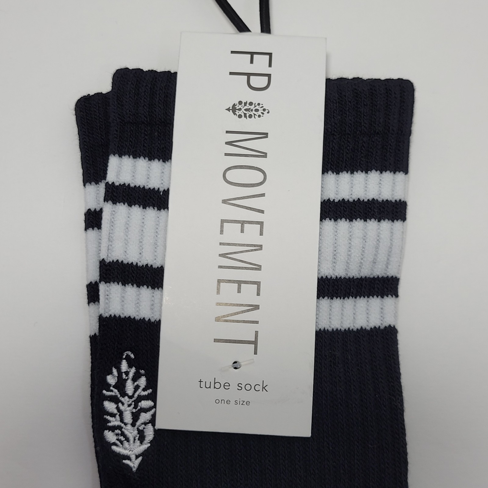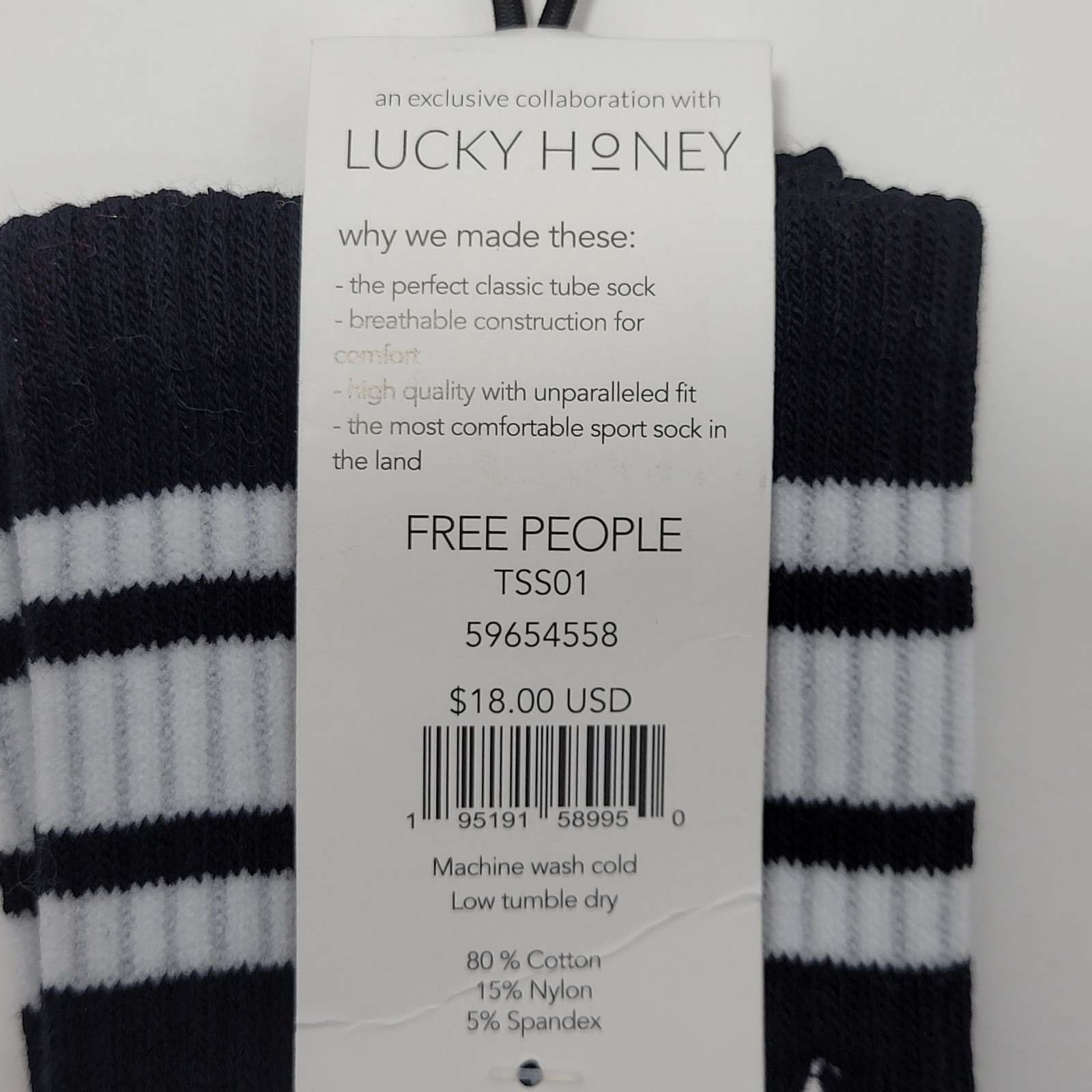 Free People Movement FP Tube Socks Lucky Honey Logo Black White One Size Preppy
