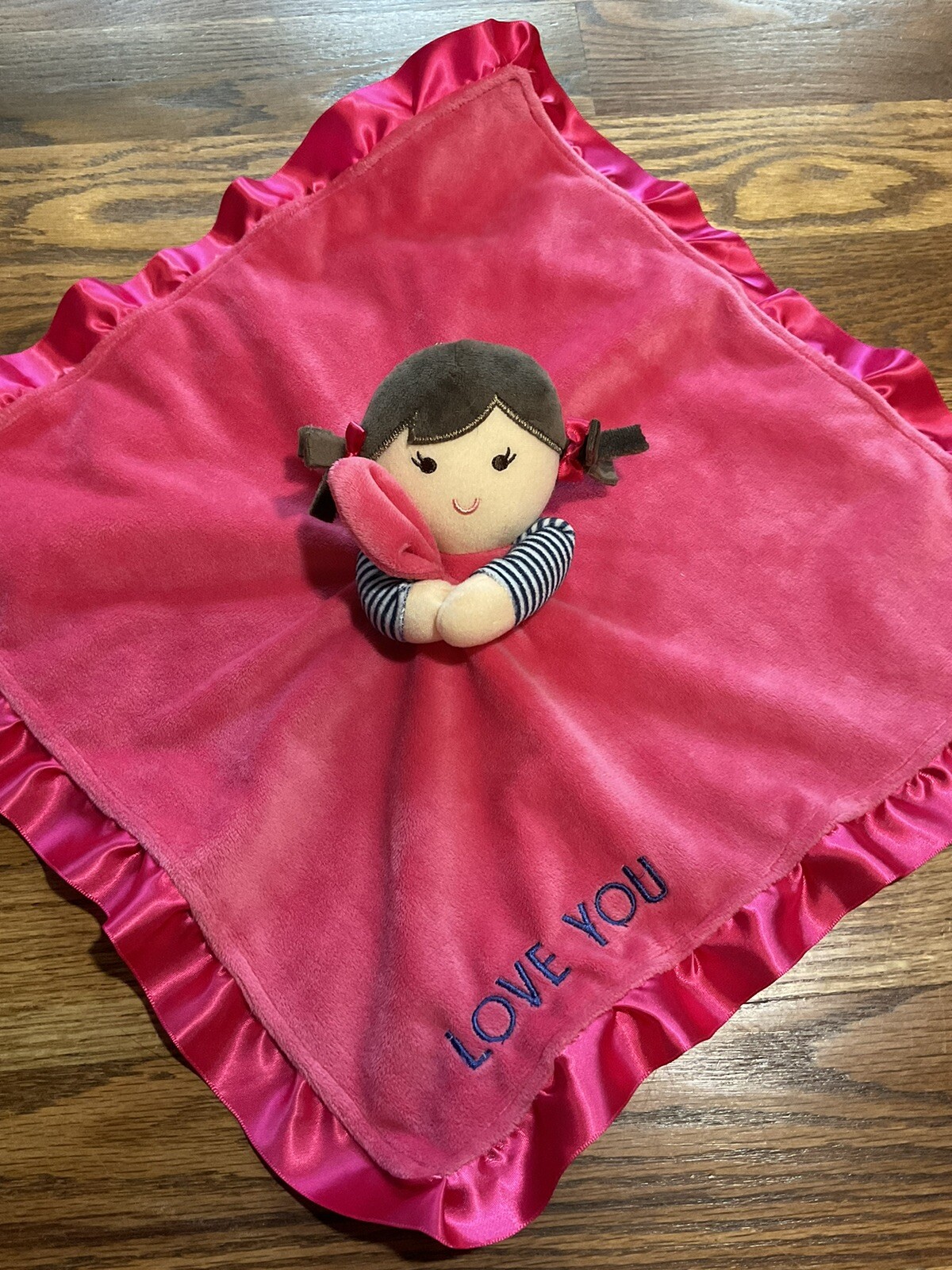 Carters Lovey Pink Rattle Love You Satin Trim Back Security Blanket Pigtail Girl