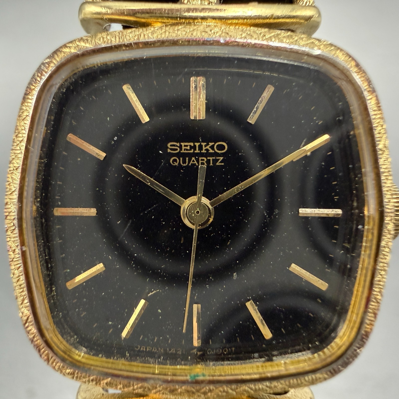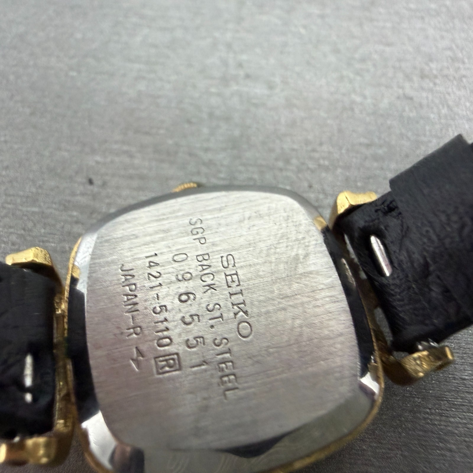 Seiko Watch Women 21mm Black Dial gold Tone Rectangle 1421-5110 New Battery