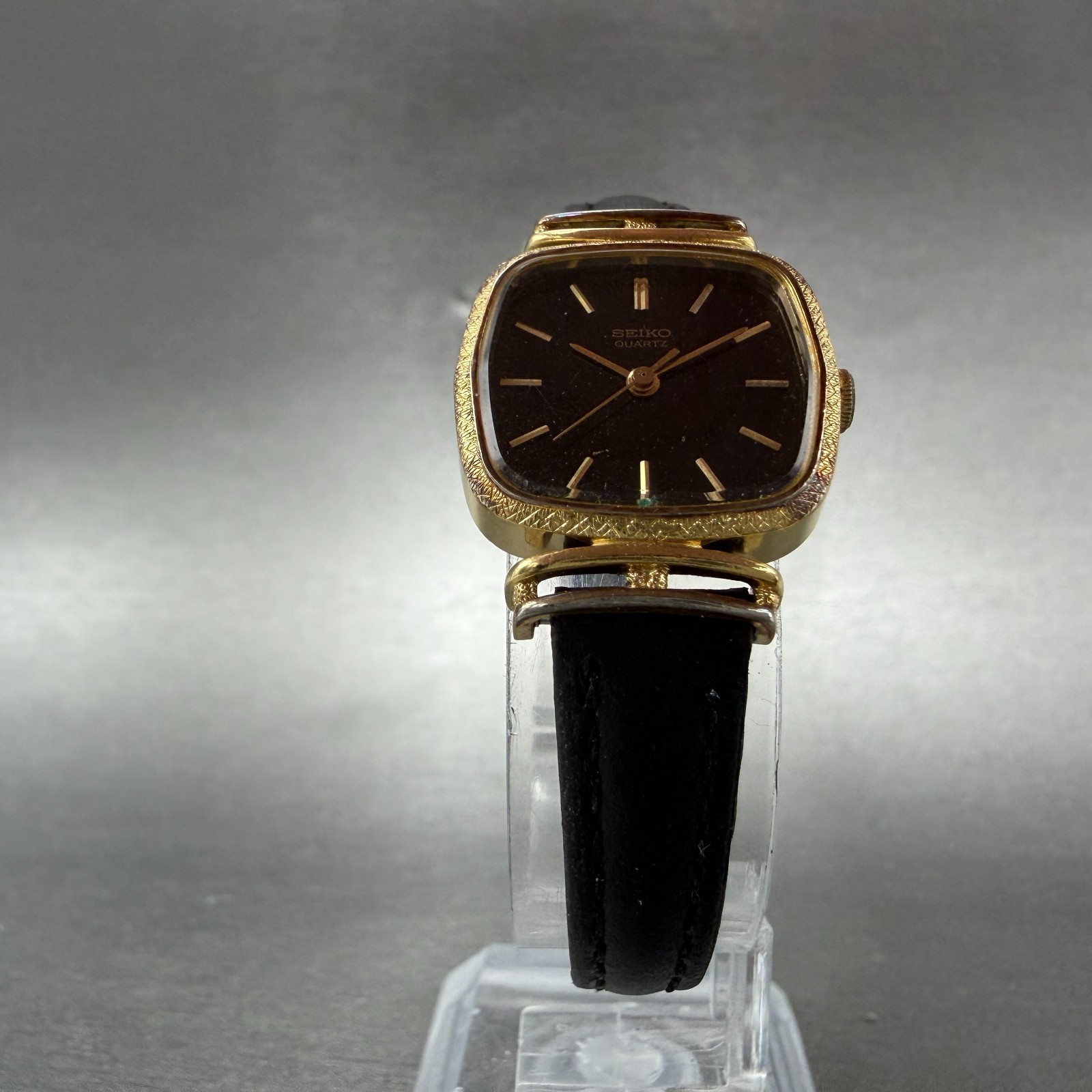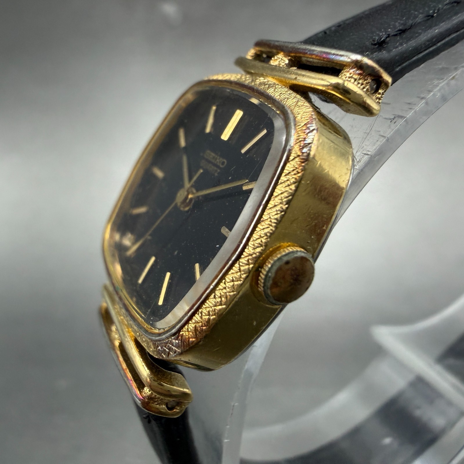 как выглядит Seiko Watch Women 21mm Black Dial gold Tone Rectangle 1421-5110 New Battery фото