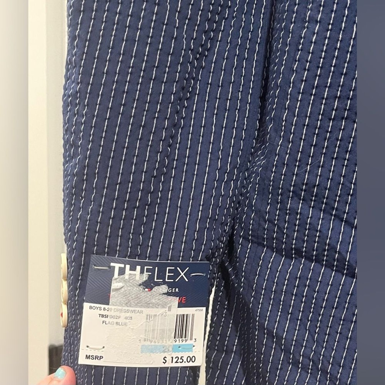 как выглядит NWT Tommy Hilfiger Boys Seersucker Navy Stripe Suit Jacket - Size 20 фото