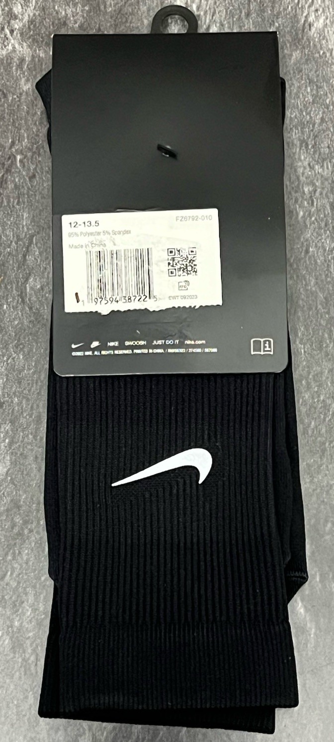 Supreme x Nike Spark Crew Socks 1 Pair Black/White Mens Sz XL 12-13.5 FZ6792 010
