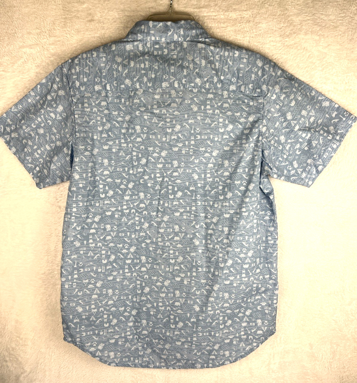 Columbia Shirt Rogers Peak Light Blue Printed Short Sleeve Mens Size Small Camp