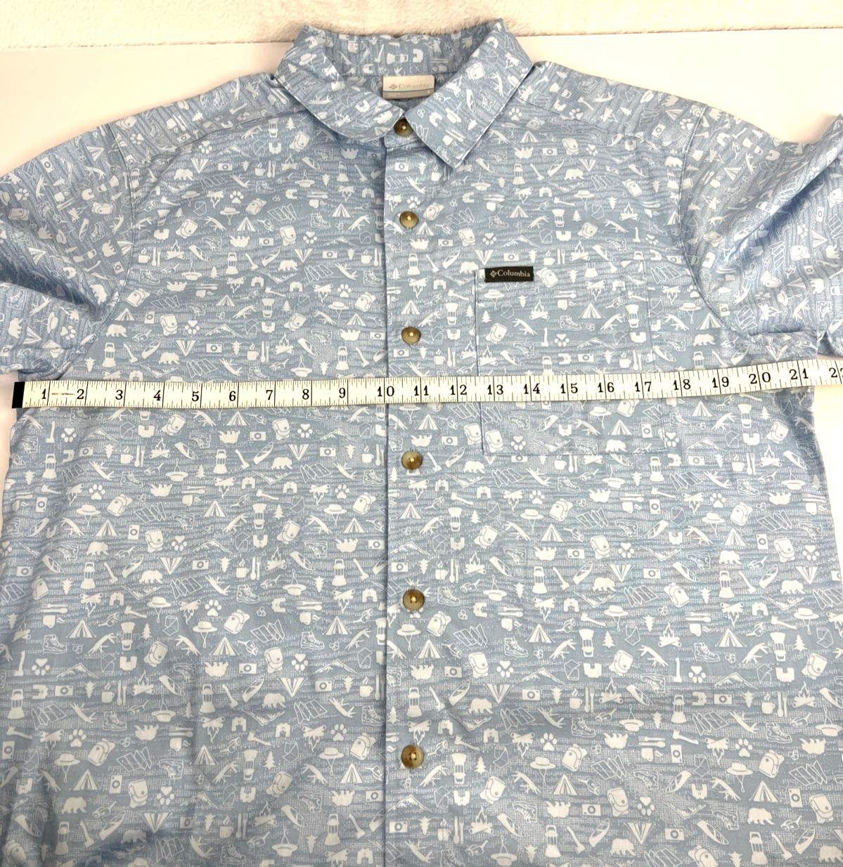 как выглядит Columbia Shirt Rogers Peak Light Blue Printed Short Sleeve Mens Size Small Camp фото